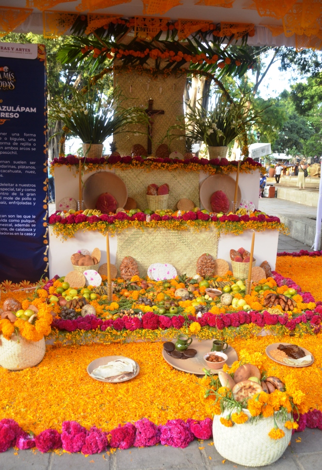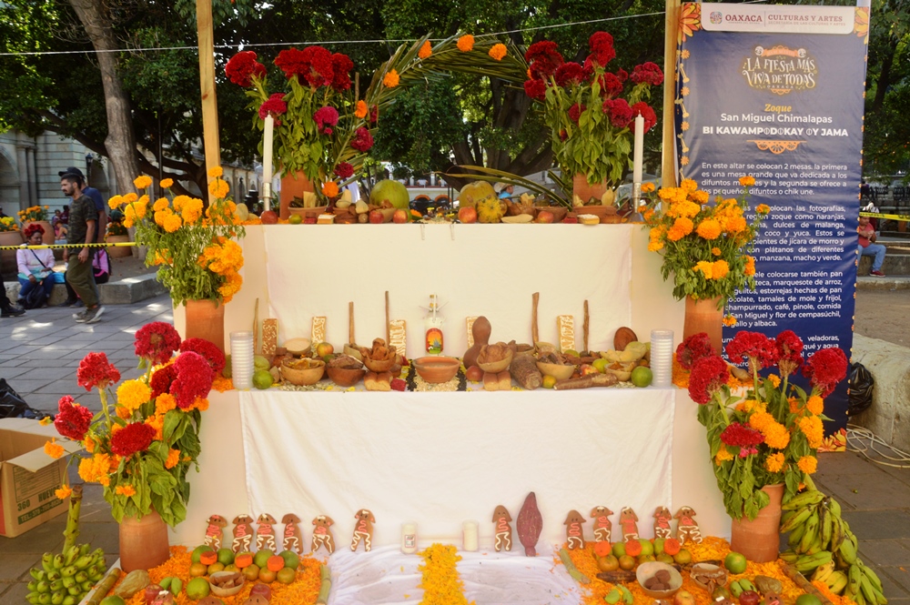 En Oaxaca sus habitantes creyentes y que profesan la religión católica colocan sus altares en sus hogares donde se coloca la imagen del santo de devoción, las fotos de los familiares y todos los alimentos que la economía permite a sus habitantes, el pan de yema hecho especial para esta festividad, la gran variedad de frutos y comida que muchas veces se cosechan en las propias comunidades observemos cada uno de los altares en estas imágenes e imaginemos que nos quieren decir cada uno de ellos y disfrutemos esta bella tradición de la fiesta de Todos Santos y Fieles Difuntos 2023.