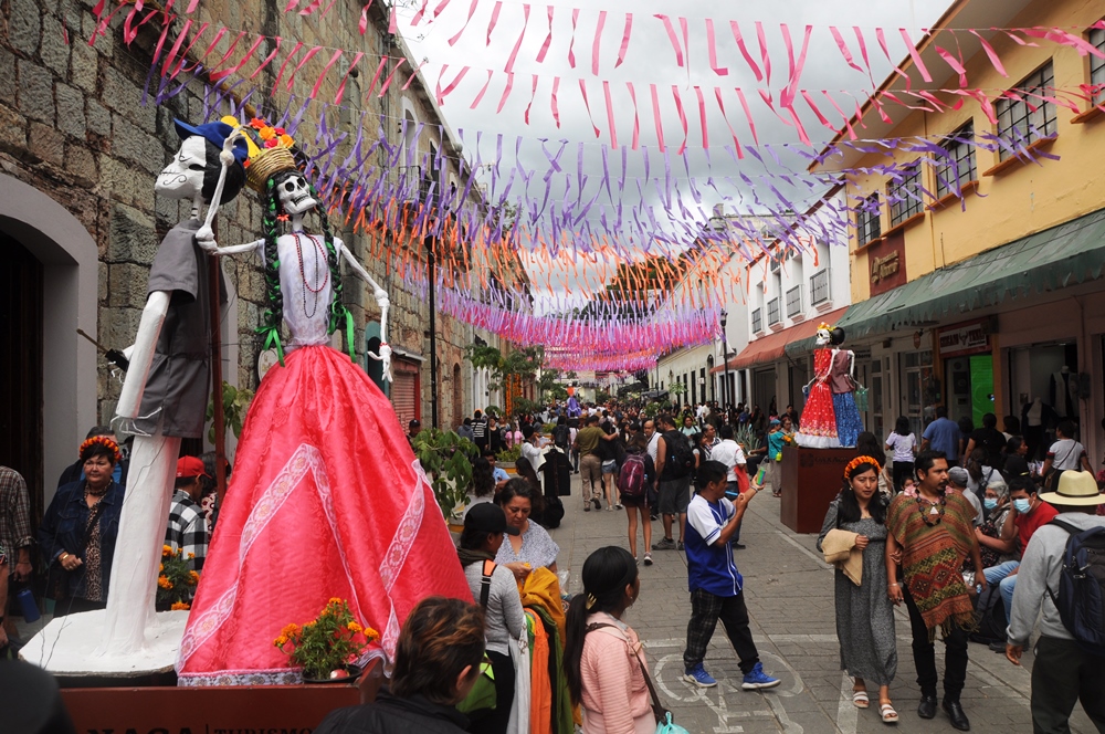 Oaxaca, cautivo a propios y extraños que estos días han recorrido las calles del centro histórico, pues restaurantes, galerías de arte, han adornado sus fachadas con hermosas obras de manos de talentosos oaxaqueños y oaxqueñas que muestran las obras de cartón, palma, barro etc, ven siempre Oaxaca tiene mucho que ofrecer en tus próximas vacaciones.