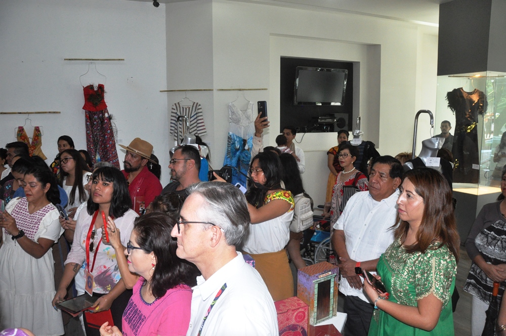 Inaugurando e inicio el recorrió de la muestra donde cada artista que participa dio a conocer como llevo acabo su diseño, destacando la presencia del rector de la URSE, CP. Miguel Ángel Hernández Mendoza, Fabiola Calvo diseñadora, Karla Martínez, Papolina, Honorio Cruz F Elvis Ortíz, Revista Mujeres Shaíque,el periodista Alfredo Martínez de Aguilar, entre otros muchos que tuvieron que ver con esta hermosa exposición que usted puede admira con una pequeña cuota al MEAPO.