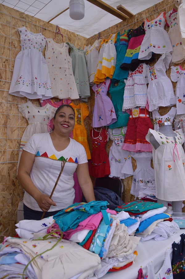 Mily´s Artesanias de Lennyy Altamirano con ropa de niña artesanal con bordado a mano en hilo de seda y algodon los puedes contactar al teléfono: 9512626692, desde hoy hasta el día 7 de abril en la expo artesanal.
