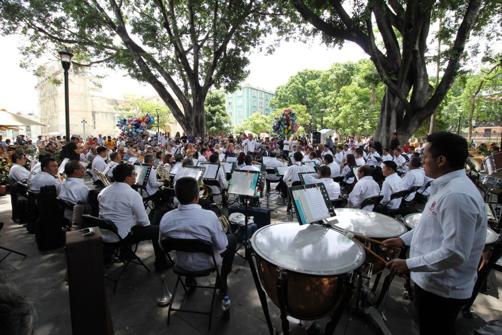 En el hermoso e inigualable zócalo de la ciudad de Oaxaca de Juárez, todos los domingos al medio día los oaxaqueños, como quienes vacacionan nacionales y extranjeros se deleitan con la música que interpreta esta gran institución integrada por oaxaqueñas y oaxaqueños de las diferentes regiones que conforman esta entidad federativa.