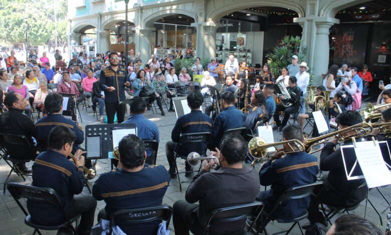 En el hermoso zócalo de la ciudad de Oaxaca de Juárez la banda infantil y juvenil, «Narciso Lico Carillo» ofrecieron el concierto dominical, donde los asistentes propios y extraños se deleitaron con la interpretación de música nacional y regional que en esta ocasión interpretaron los integrantes de esta banda muchos de los integrantes de orígenes de la sierra Juárez, bajo la batuta de su director: Mtro. Francisco Lico Ventura, a los cuales usted puede contratar al teléfono:9512800573 calle: Cordillera de los Andes 108 colonia Volcanes en Instagram: banda narciso lico carrillo.