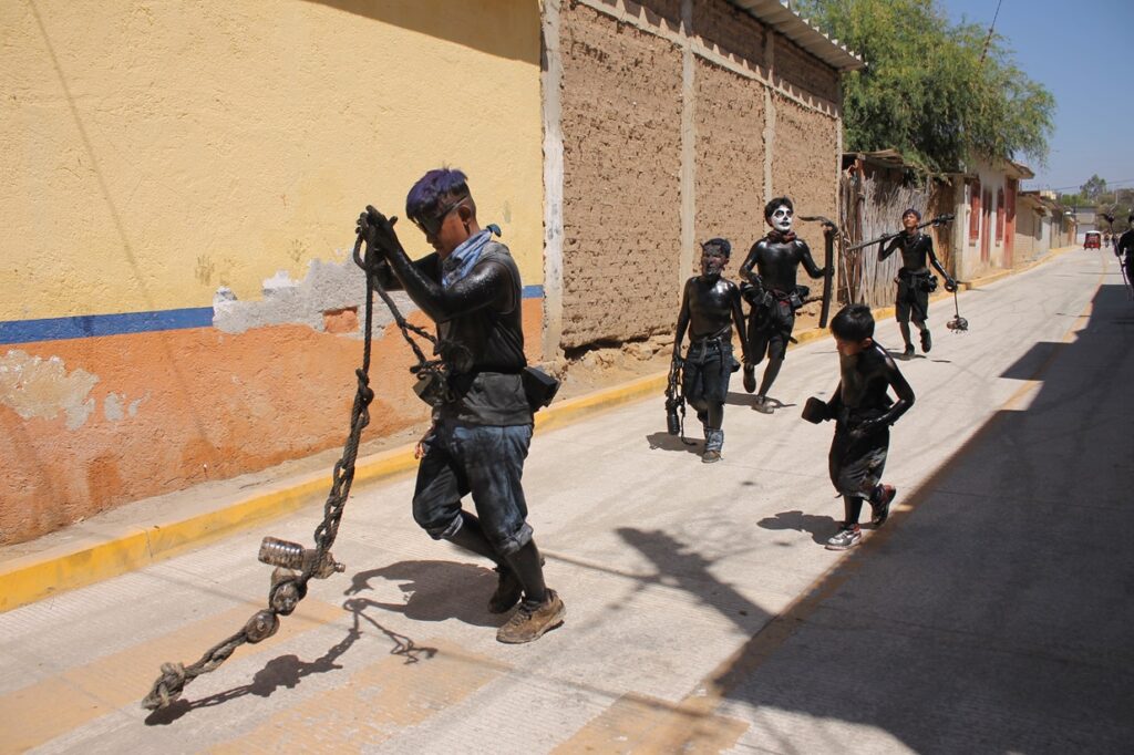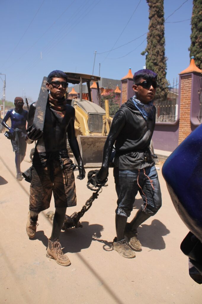 San Martín Tilcajete Ocotlán de Morelos Oaxaca México.- Aquí en la tierra donde las manos de los grandes maestros del arte en tallado de madera de copal, se realizó el tradicional martes de carnaval, donde los jóvenes participantes desde los primeros rayos del sol empiezan a recorrer las calles, aceitados sus cuerpos y en la cintura decenas de campanas llamadas cenceros anuncian que es el día del carnaval 2025.