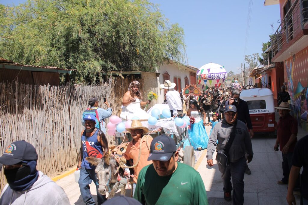 Para el medio día se realiza el recorrido y se lleva a cabo en los corredores del palacio municipal una boda tradicional de esta población donde la picardía mexicana es parte de esta, jóvenes mujeres y hombres participan la música de banda ameniza y van bailando en las calles, donde propios y extraños se deleitan con la gran creatividad de algunos de los participantes al elaborar su traje con el que participan y dan realce a esta hermosa tradición en la tierra de los alebrijes, San Martín Tilcajete de los valles centrales de Oaxaca México.