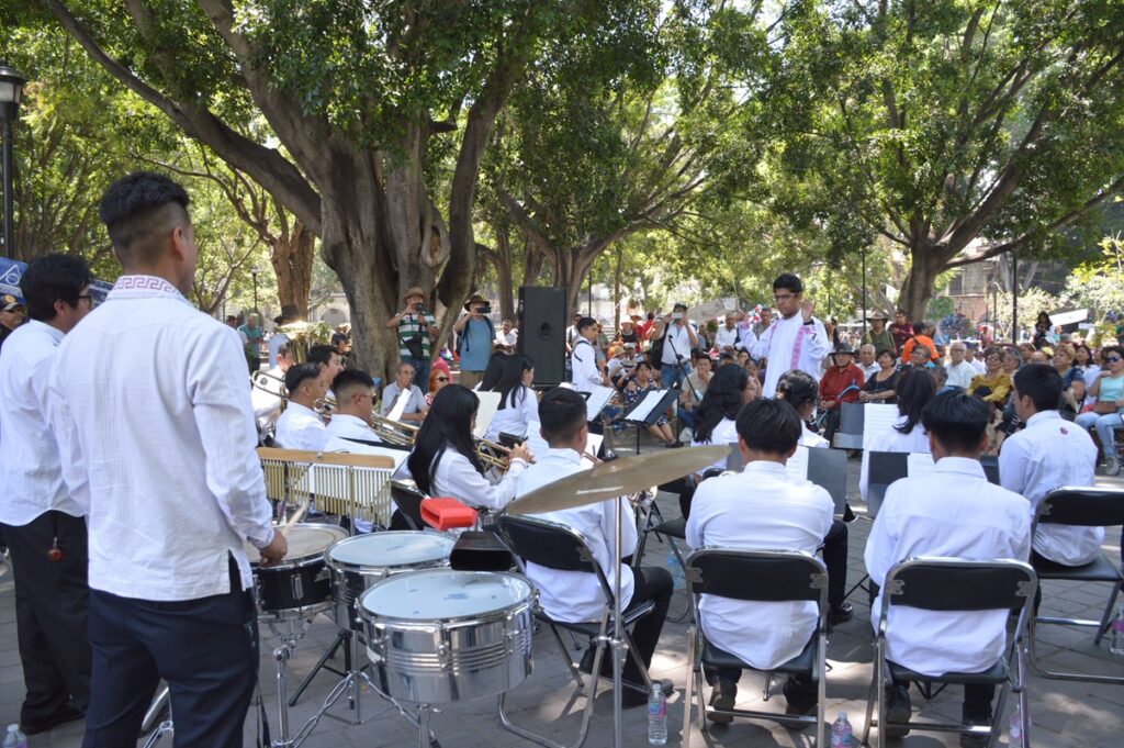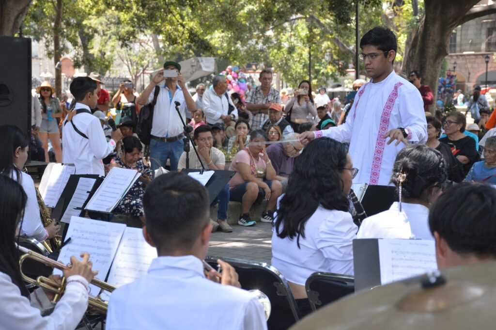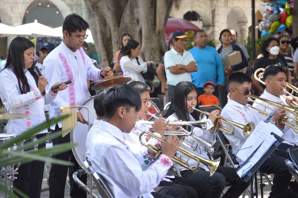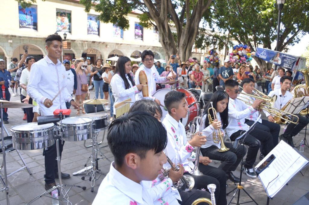 En el corazón de la capital oaxaqueña este domingo propios y extraños se deleitaron con la música que interpreto la banda infantil y juvenil «CULTURA MAZATECA» de la hermosa región mazateca bajo la batuta de su director Rodney Jesús Cerqueda Angulo, quien también tiene composiciones donde destaca las tradiciones y costumbres de esta hermosa región de Oaxaca en el sureste mexicano.