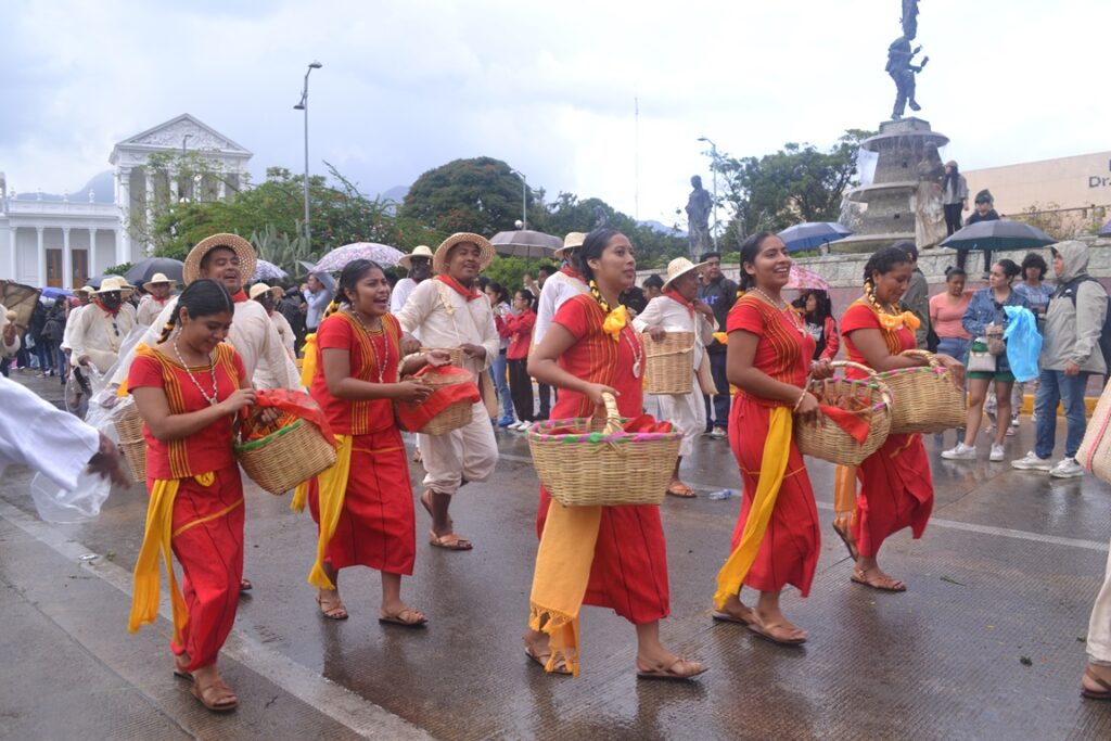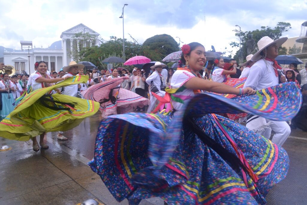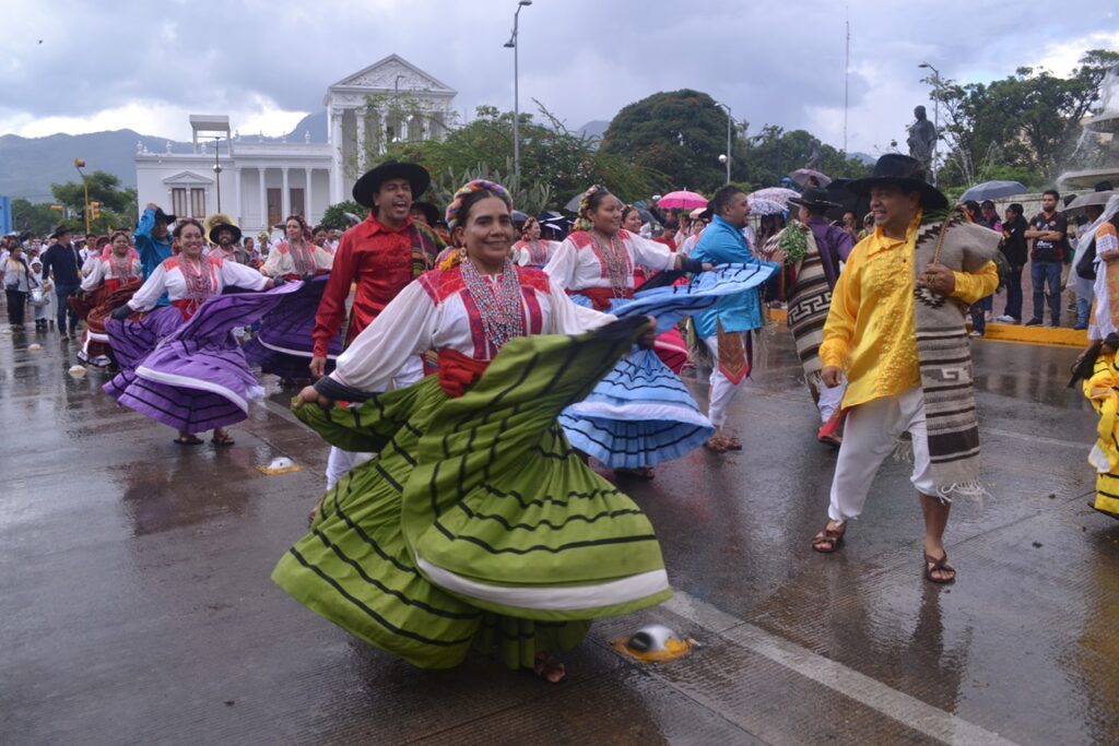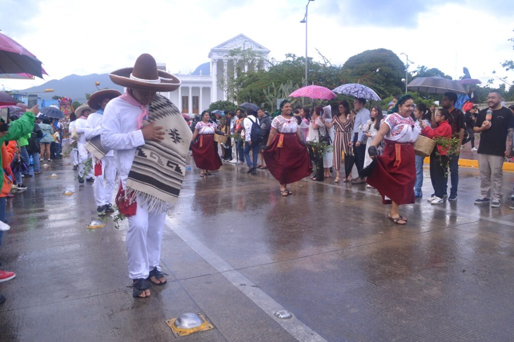 Oaxaca vuelve a cautivar a propios y extraños con su música sus trajes sus danzas su guelaguetza, que con gusto comparten los participantes destacando el rico mezcal que en la mayoría de las diferentes regiones se producen, la lluvia no fue impedimento para que lucieran sus sones jarabes y chilenas.