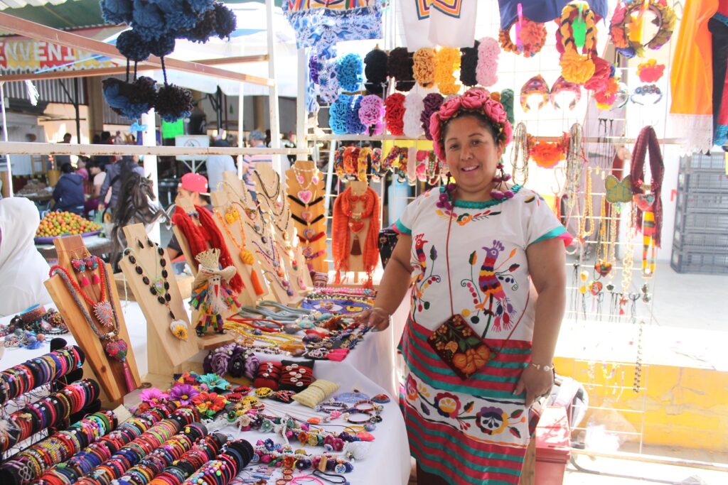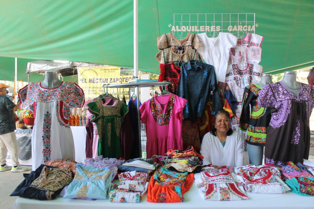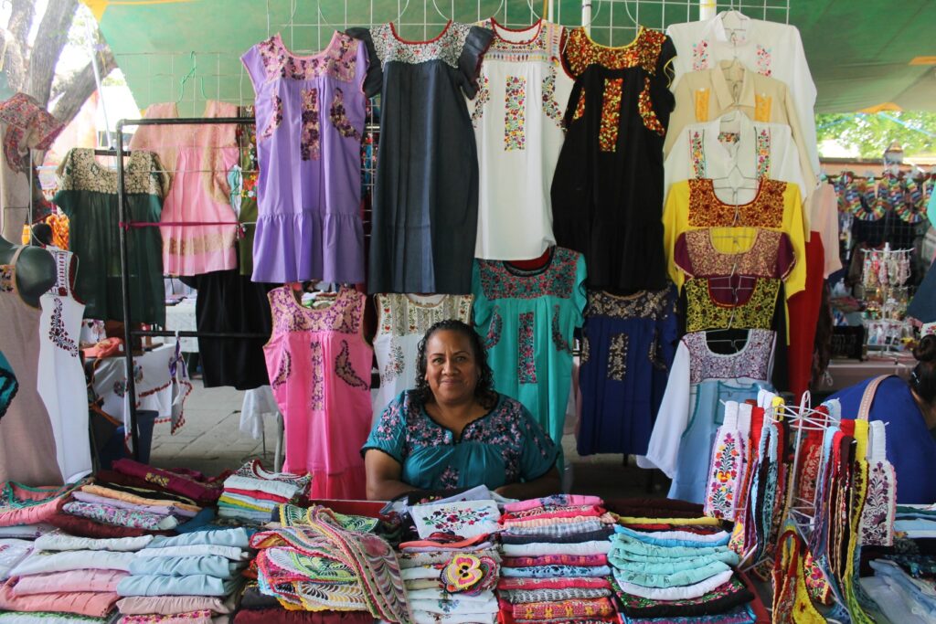 Las mujeres expenden sus hermosos vestidos y blusas donde dejan plasmada las bellas flores que bordan con hilo que son muy vistosos aquí en los valles centrales de Oaxaca México.