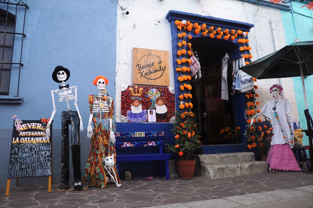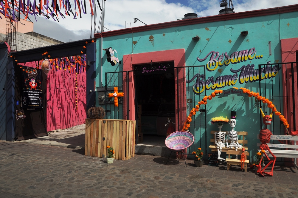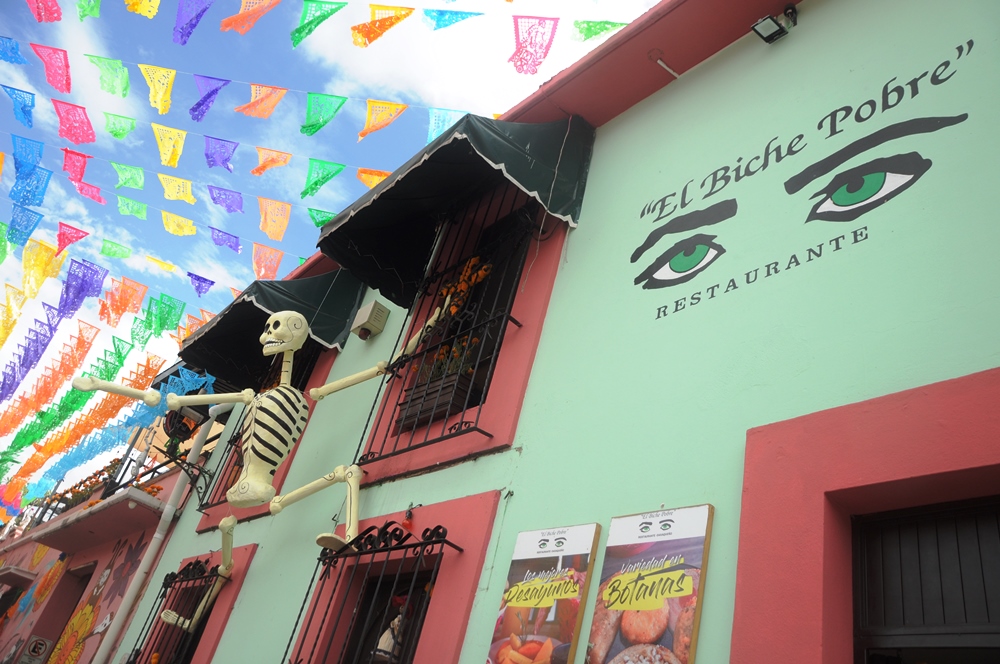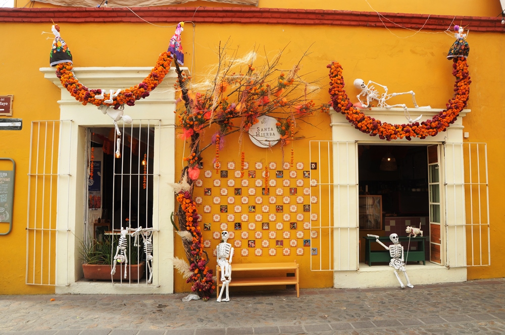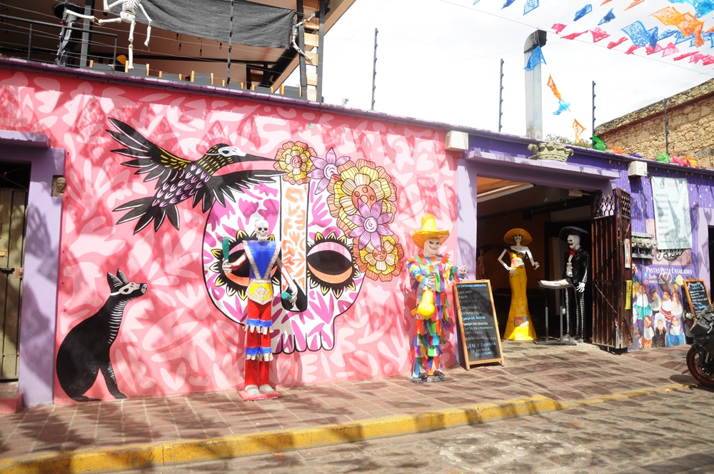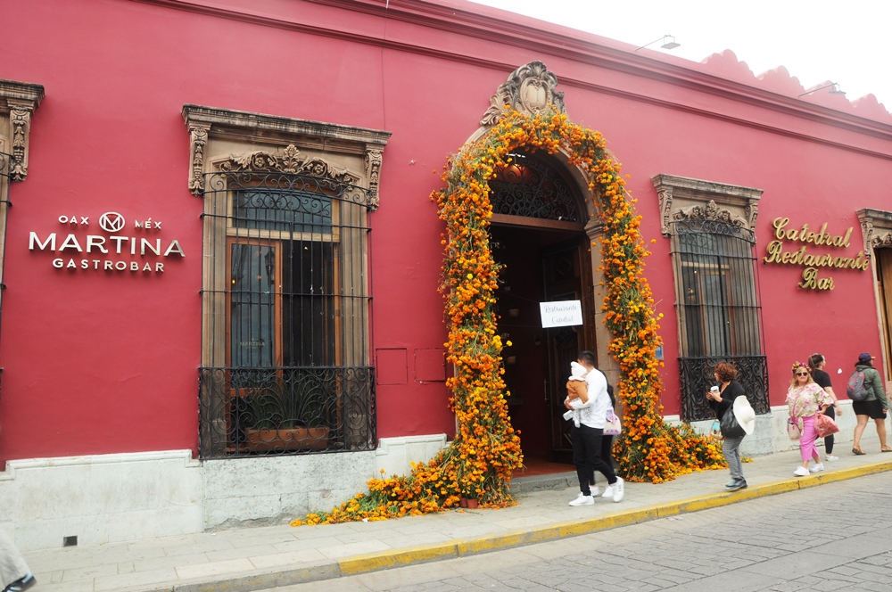 Empresarios oaxaqueños, de restaurante, hotel, artesanos y tiendas donde se expenden productos de las manos mágicas de oaxaqueñas y oaxaqueños, prestadores de servicios, demostraron con el arreglo de sus comercios, en la festividad de todos santos y fieles difuntos 2023, el orgullo del arte.