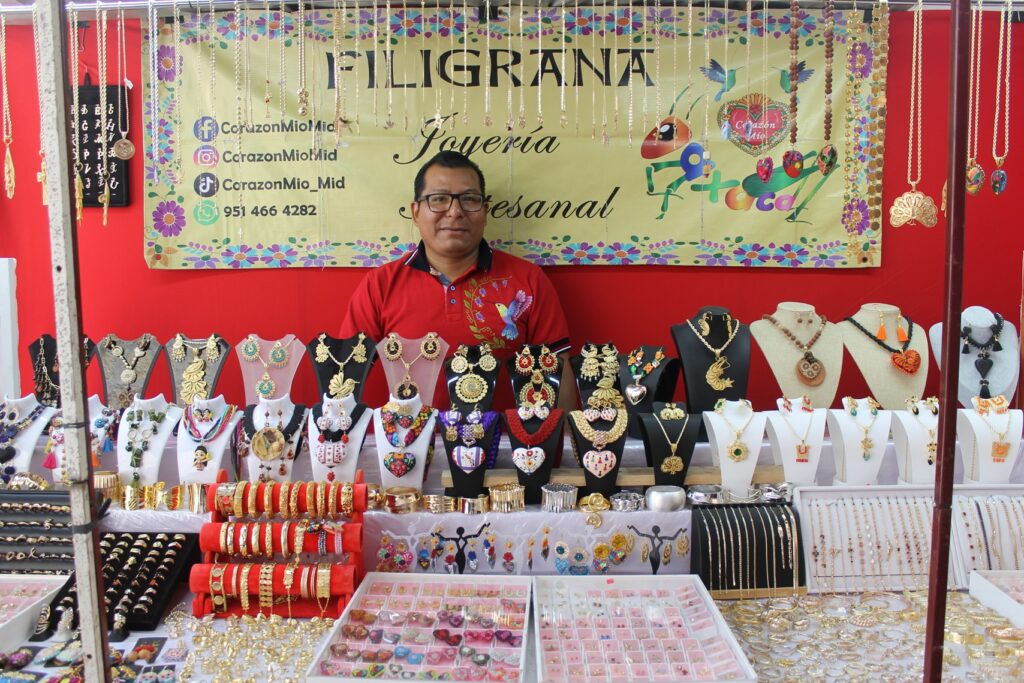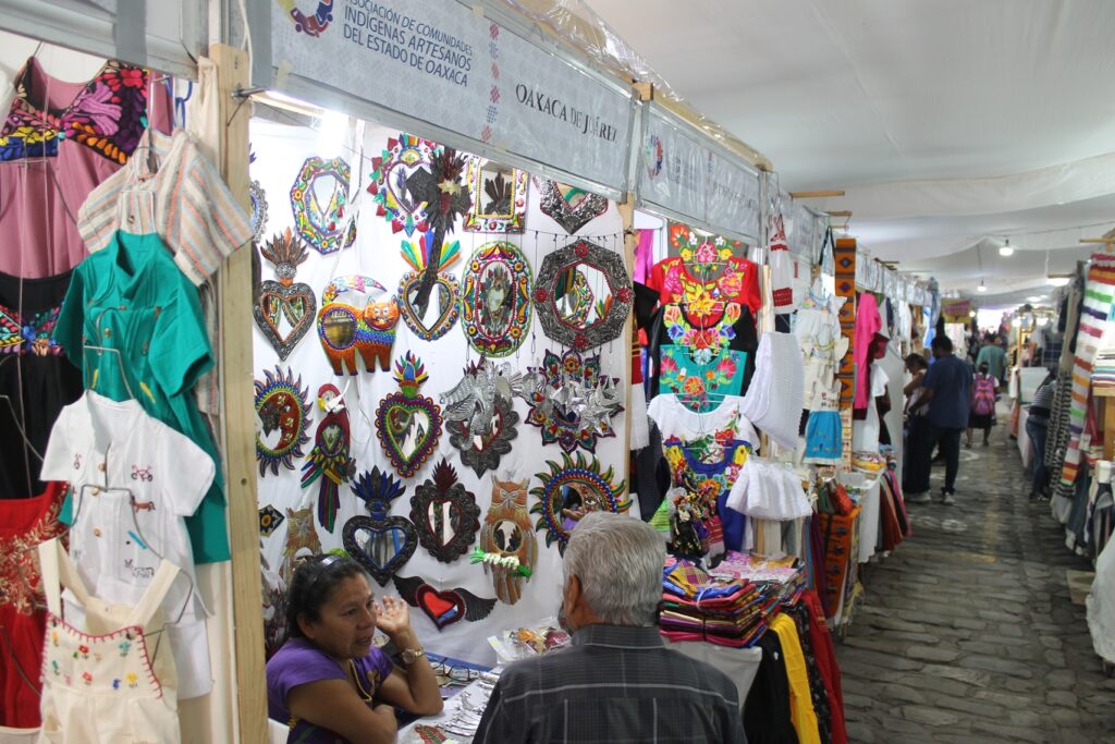 En la calle de Macedonio Alcalá en el andador turístico de la ciudad de Oaxaca de Juárez, y en la calle de Hidalgo a un lado de la alameda de León puedes encontrar una gran variedad de ´productos que las manos indígenas realizan en las diferentes expresiones artísticas, textiles, vestidos bordados, talla en madera, joyería en plata, así también en chapa de oro, mezcal, tejate, presentes en esta festividad de semana santa desde hoy y hasta el 12 de abril ven a admirar el trabajo que cada uno realiza.