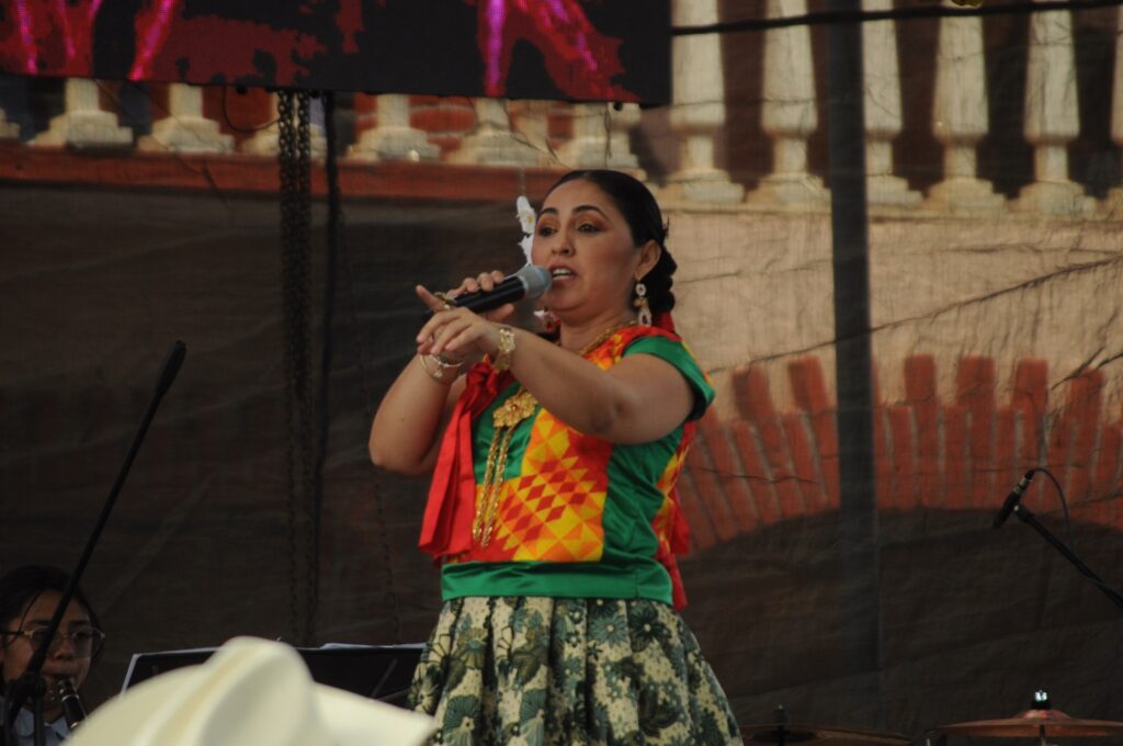 Luego de realizar una calenda por las calles de la población acompañados de las autoridades municipales y del alumnado de las diferentes instituciones educativas que participaron ataviados con trajes regionales llegaron al concierto que ofreció la cantante; istmeña Patricia Alcaraz, que fue la madrina de esta expo 2024.