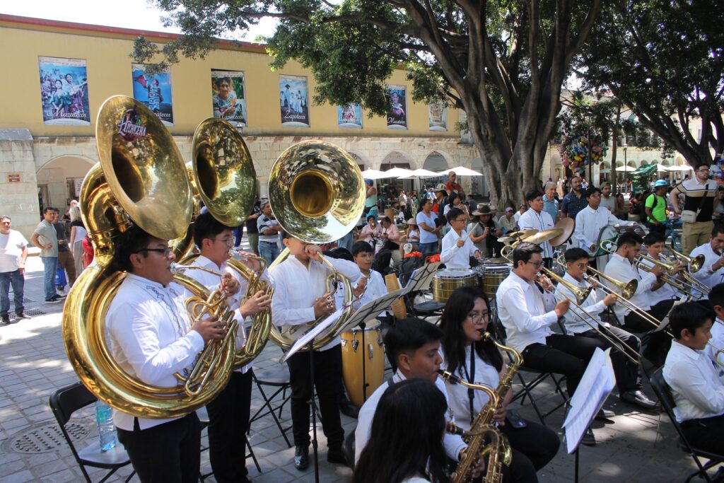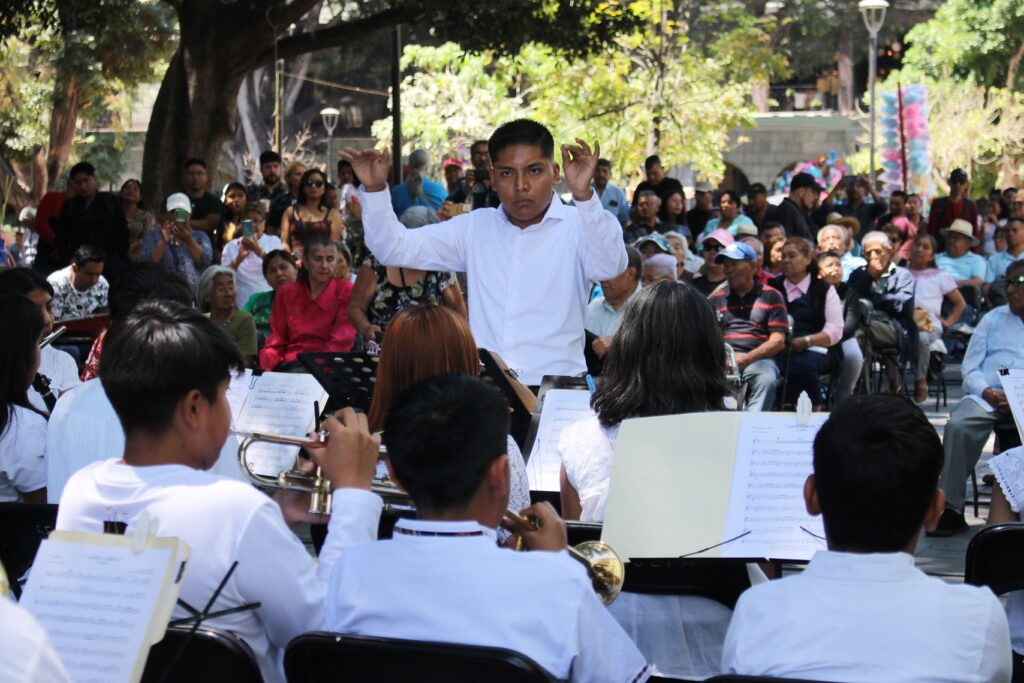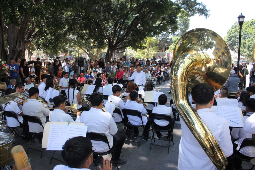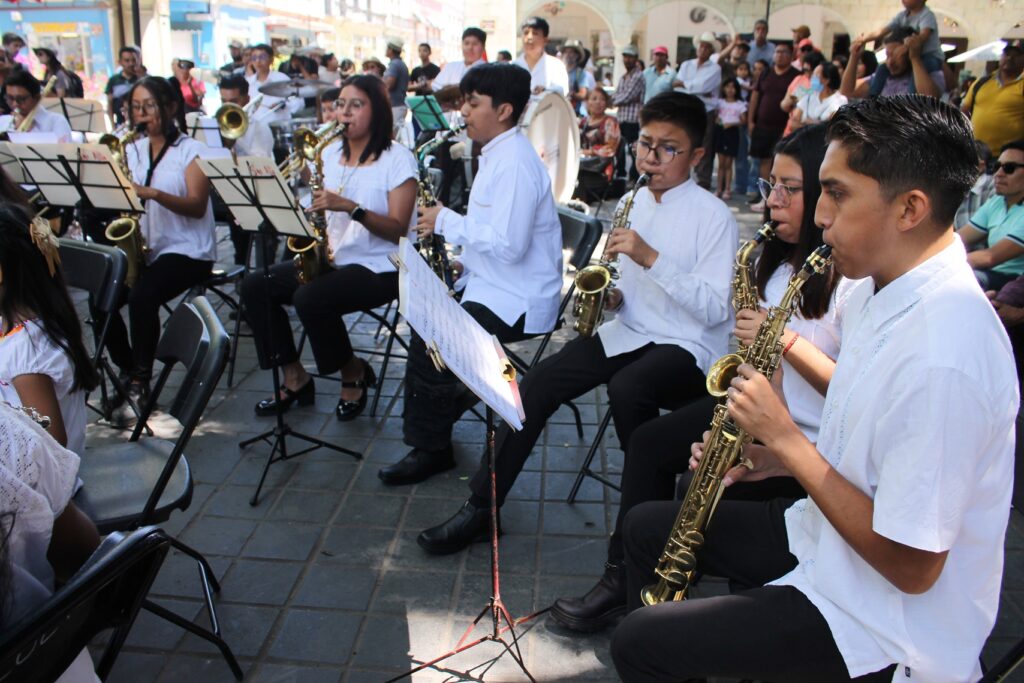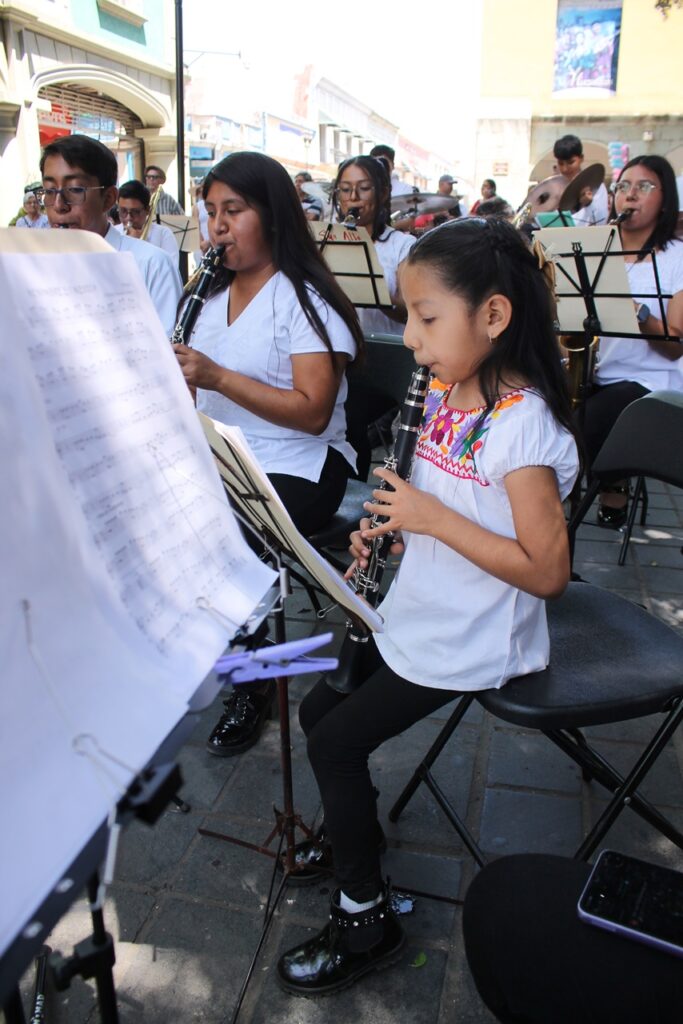 Gran concierto Dominical de la Banda Infantil y Juvenil de Santa Cruz Xoxocotlan en el zócalo de la ciudad de Oaxaca.