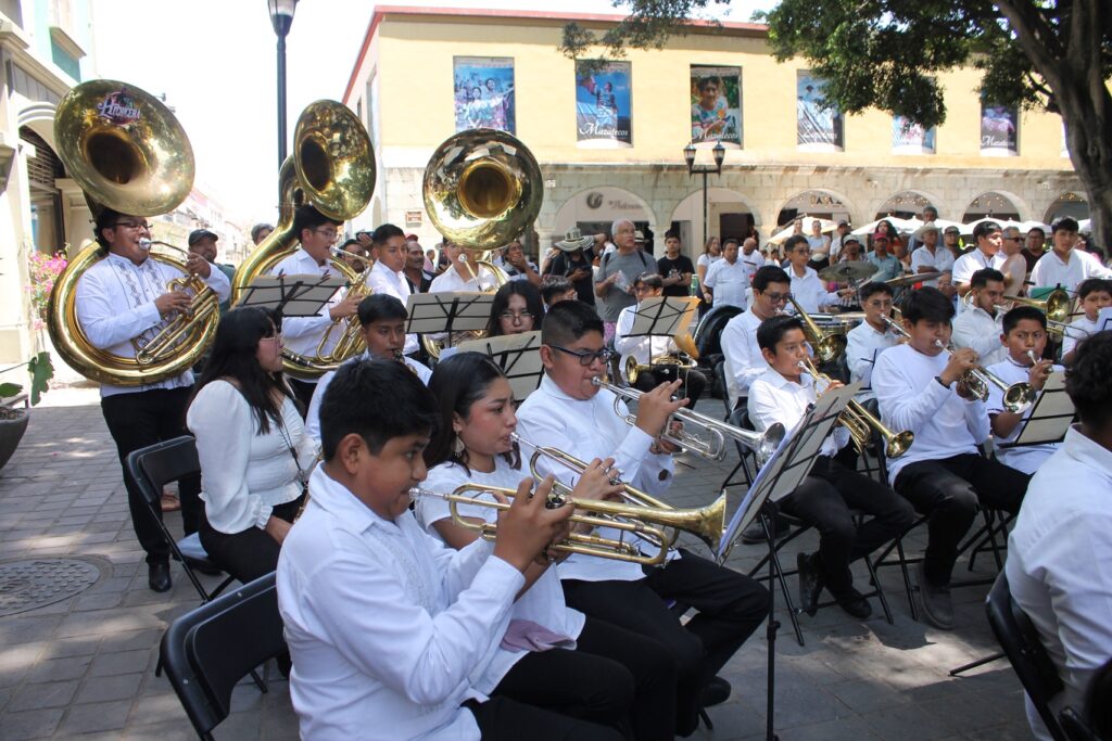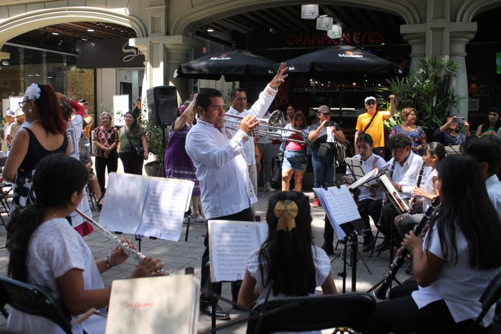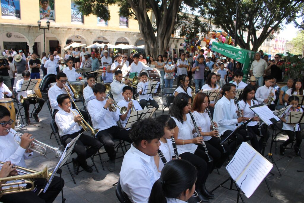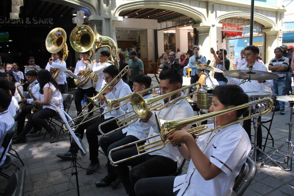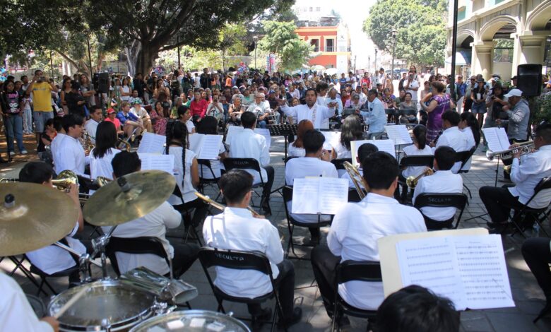 Gran concierto Dominical de la Banda Infantil y Juvenil de Santa Cruz Xoxocotlan en el zócalo de la ciudad de Oaxaca.