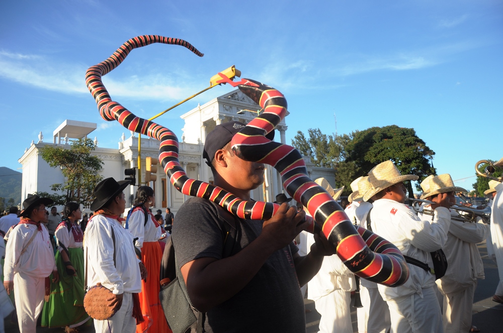 La música de cuerdas acompañados de los instrumentos de viento, brindan hermosos sonidos de jarabes y chilenas que los participantes a la guelaguetza brinda a propios y extraños que visitan esta entidad.