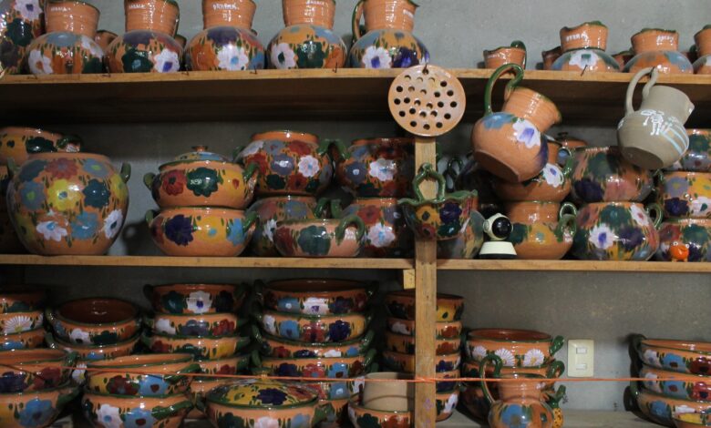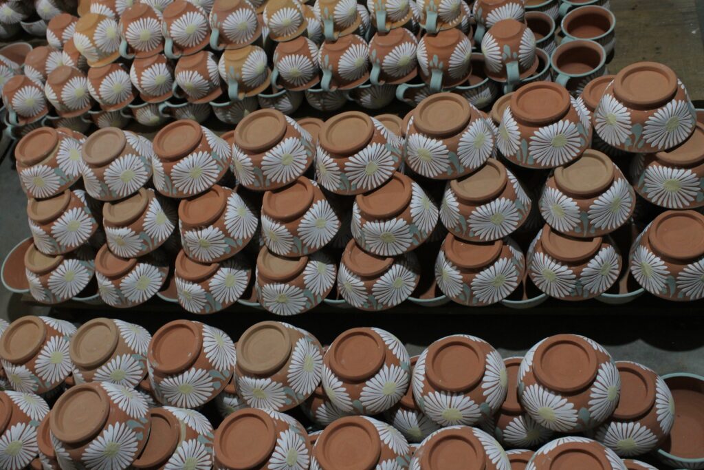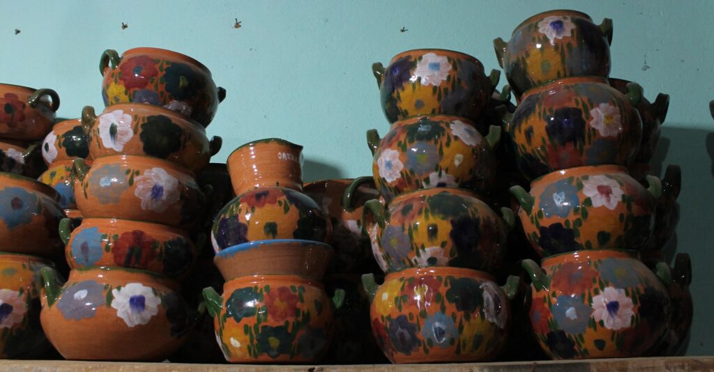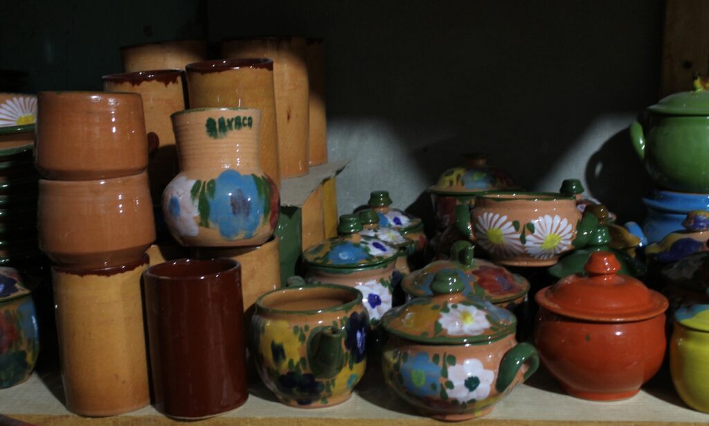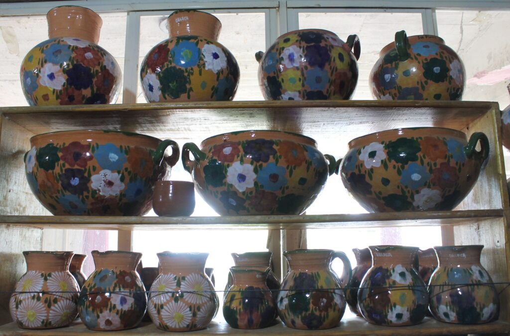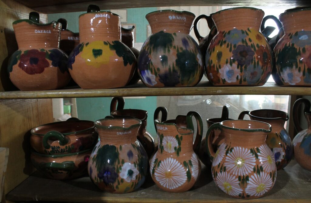 Jarros, Ollas, Cazuelas y tazas de la alfarería oaxaqueña de loza Chávez en Oaxaca México.