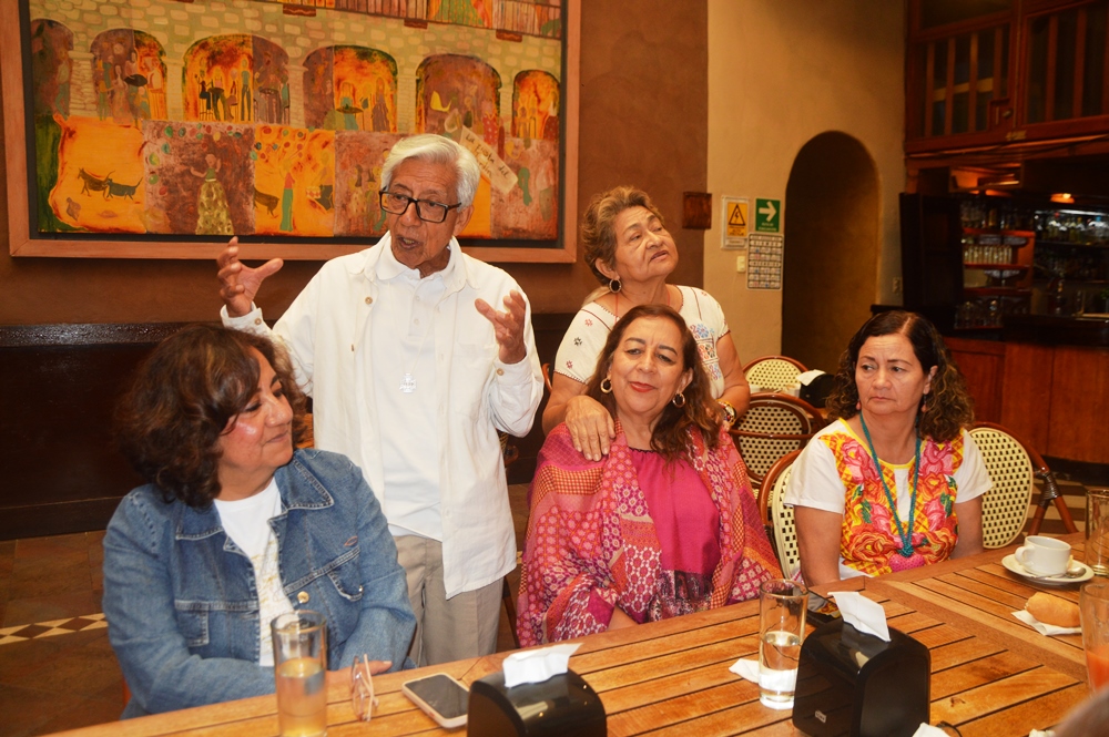 Oaxaca de Juárez Oaxaca México.- En el restaurante café del Jardín en el centro histórico de la muy hermosa ciudad de Oaxaca, tuvo lugar el desayuno sorpresa para el decano del periodismo oaxaqueño, Leandro Hernández Romero, donde ex colaboradores de trabajo, ofrecieron al festejado.