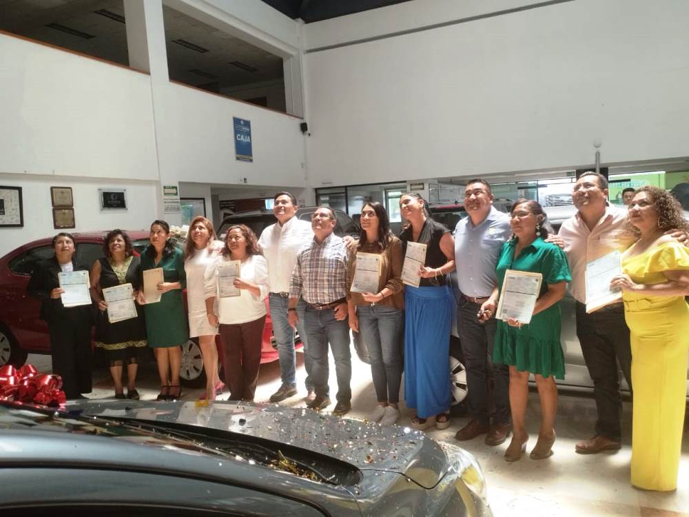 Encabezados por el secretario general del STPEIDCEO Ingeniero Pedro Castillejos Villalobos y en presencia de los secretarios que conforman el comité 2022-2025, la compañera Lourdes María Jímenez de la delegación 3A102 de la gubernatura acompañada de la delegada; María Jesús Edith Sol Estrada delegada de la 3A102 de la gubernatura y de sus familiares más cercanos, recibió el auto que gano en el festival del día de las madres 2023 organizado por el sindicato y el gobierno del estado de Oaxaca.