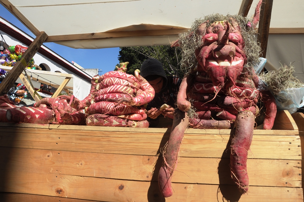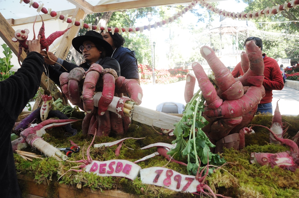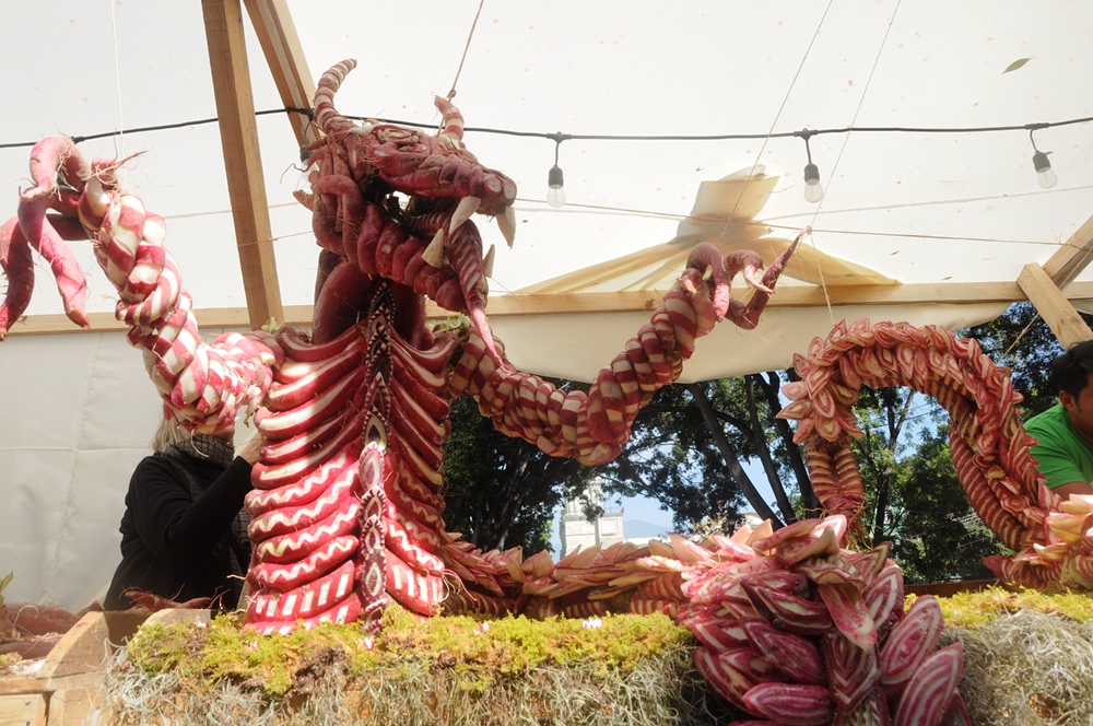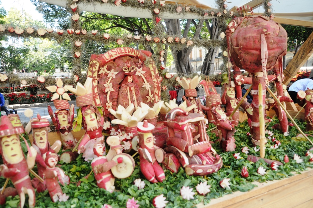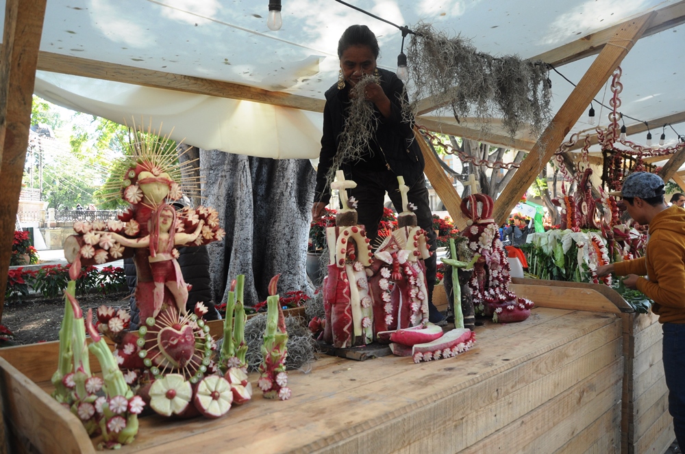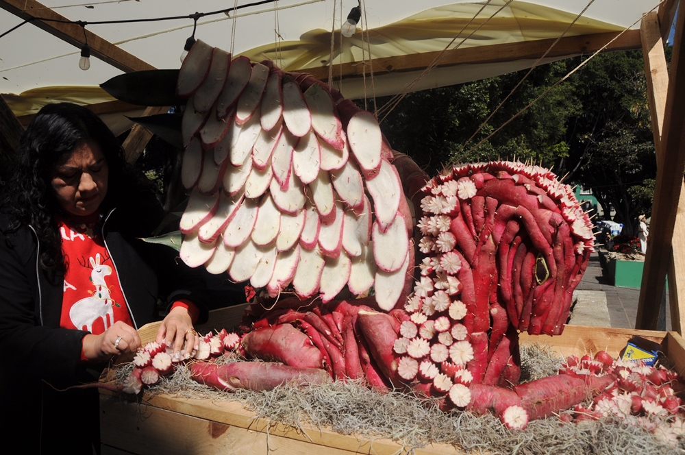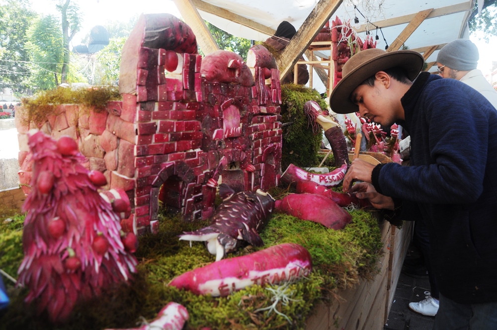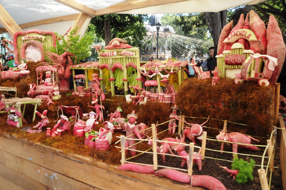 Oaxaca de Juárez Oax.México.- Vuelve a cautivar las manos de los artistas que participan en la tradicional noche de rábanos única en este hermoso estado del sureste mexicano, con hermosas y bellas obras de arte elaboradas con el tubérculo, donde luego de la cosecha tienen máximo cuatro días para elaborar las obras con las que concursan y en donde se ve el trabajo de muchas horas pues en varias de estas tienen un gran trabajo para su elaboración.