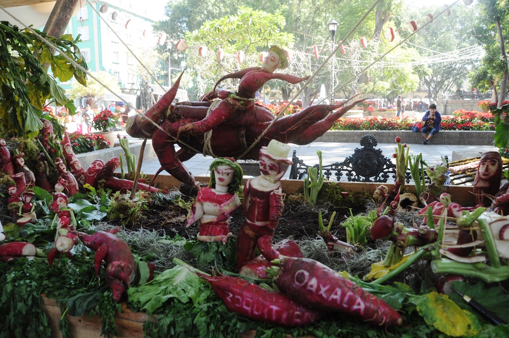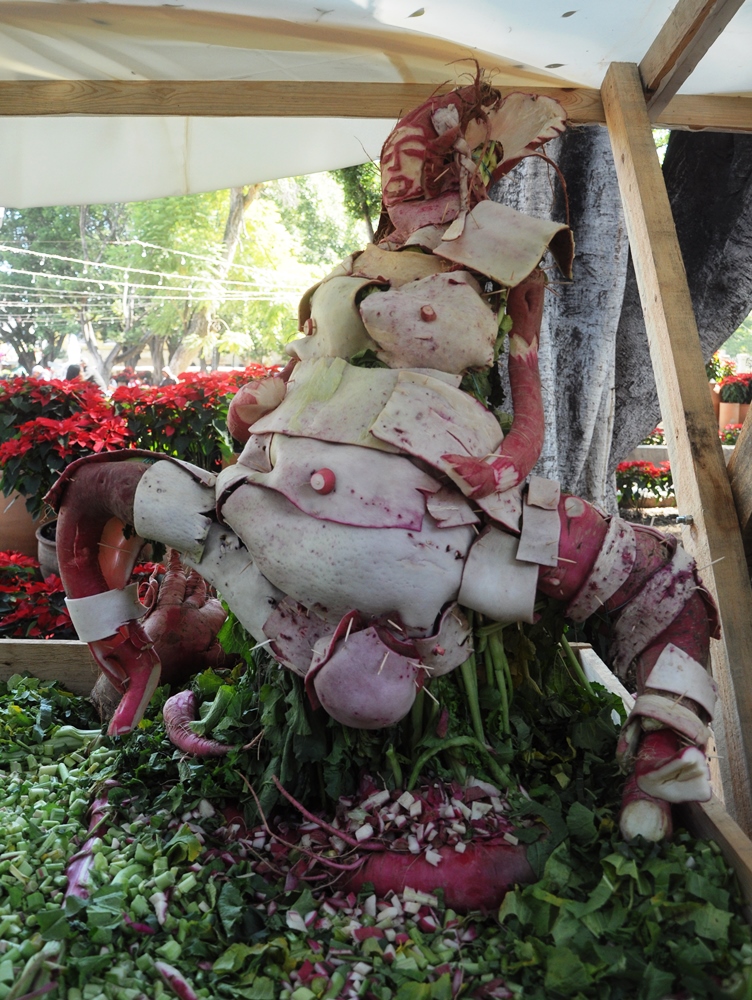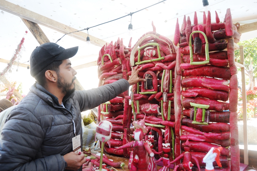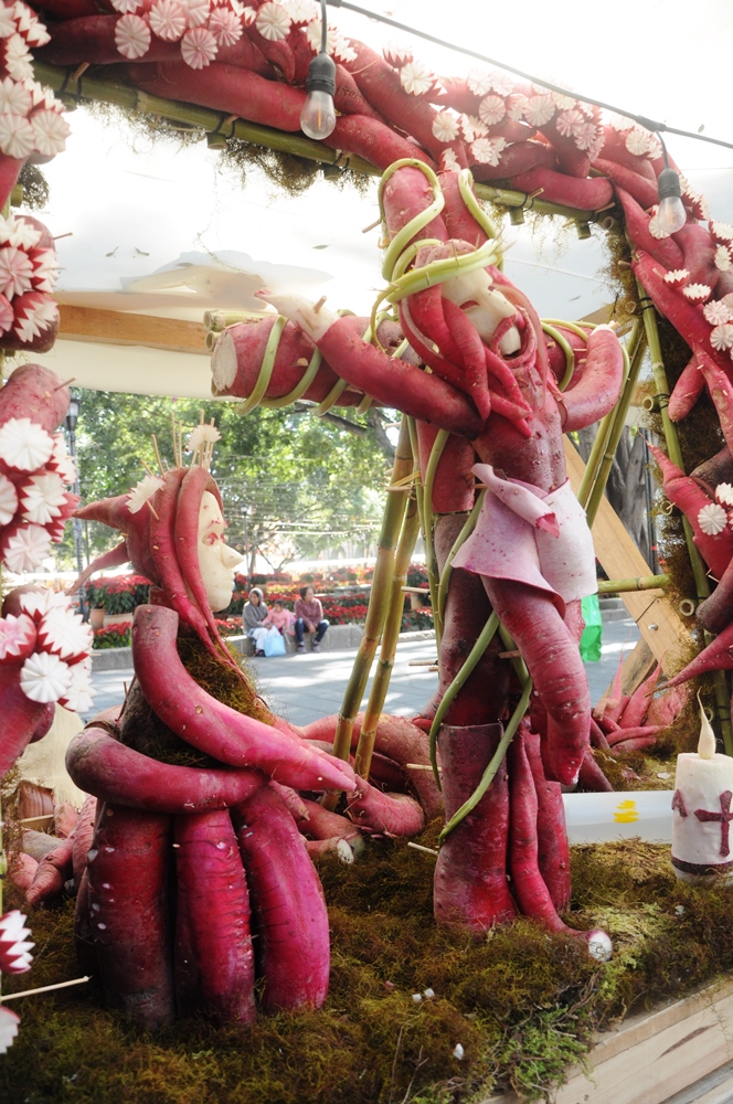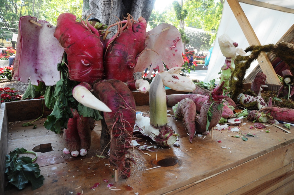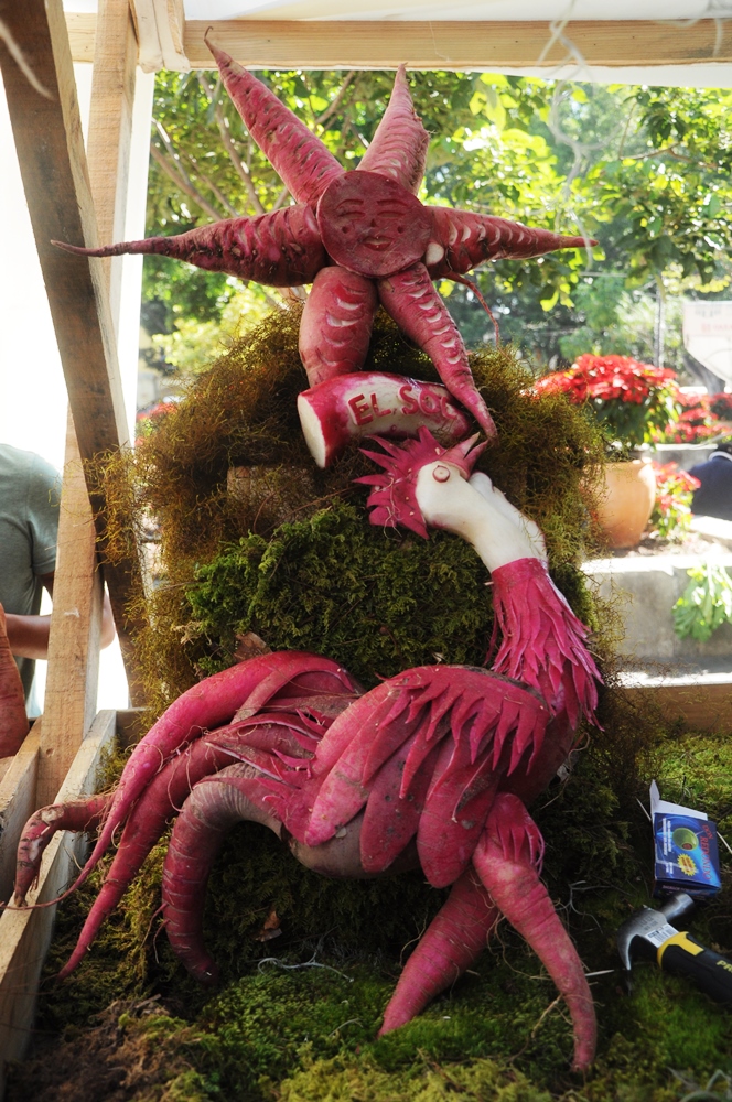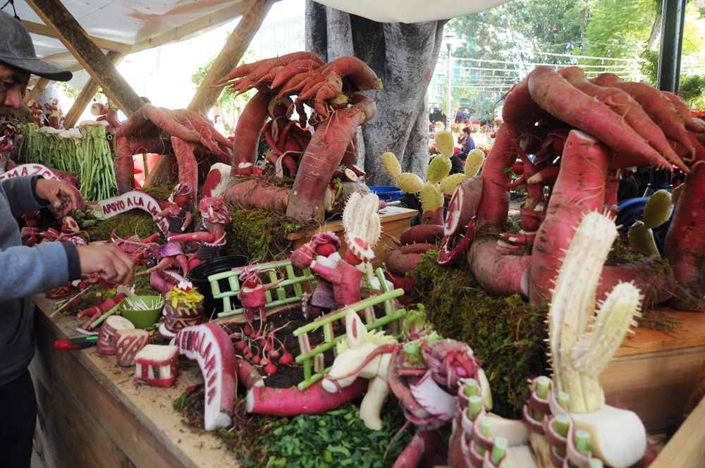 Oaxaca de Juárez Oax.México.- Vuelve a cautivar las manos de los artistas que participan en la tradicional noche de rábanos única en este hermoso estado del sureste mexicano, con hermosas y bellas obras de arte elaboradas con el tubérculo, donde luego de la cosecha tienen máximo cuatro días para elaborar las obras con las que concursan y en donde se ve el trabajo de muchas horas pues en varias de estas tienen un gran trabajo para su elaboración.