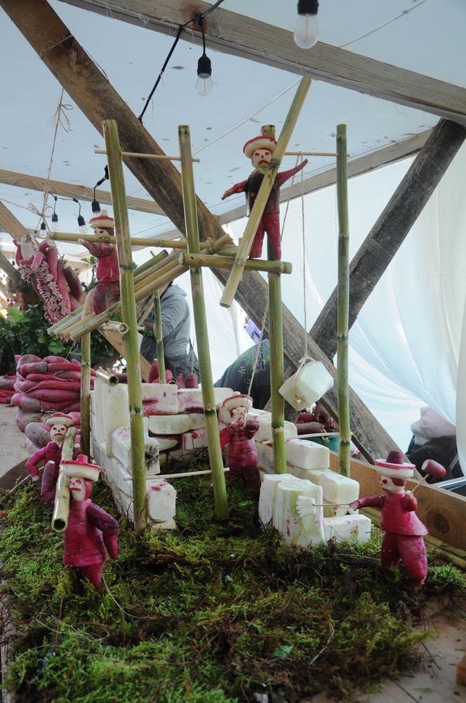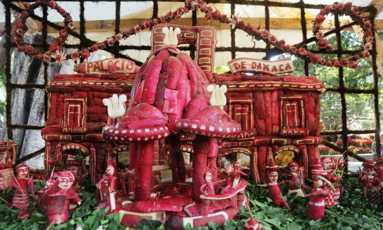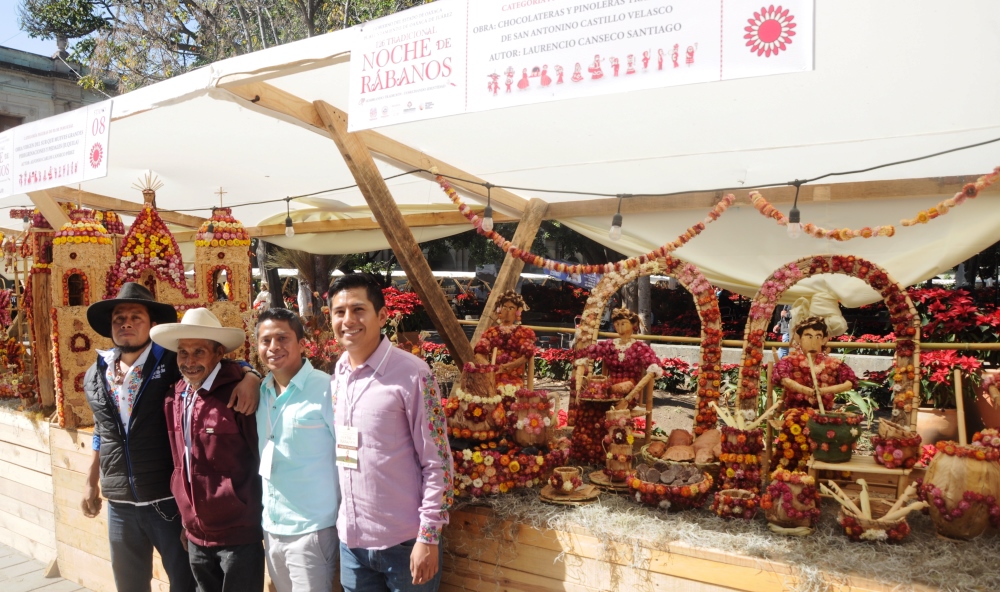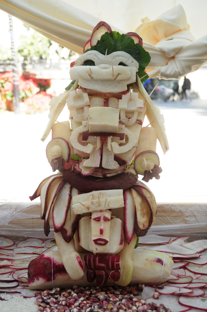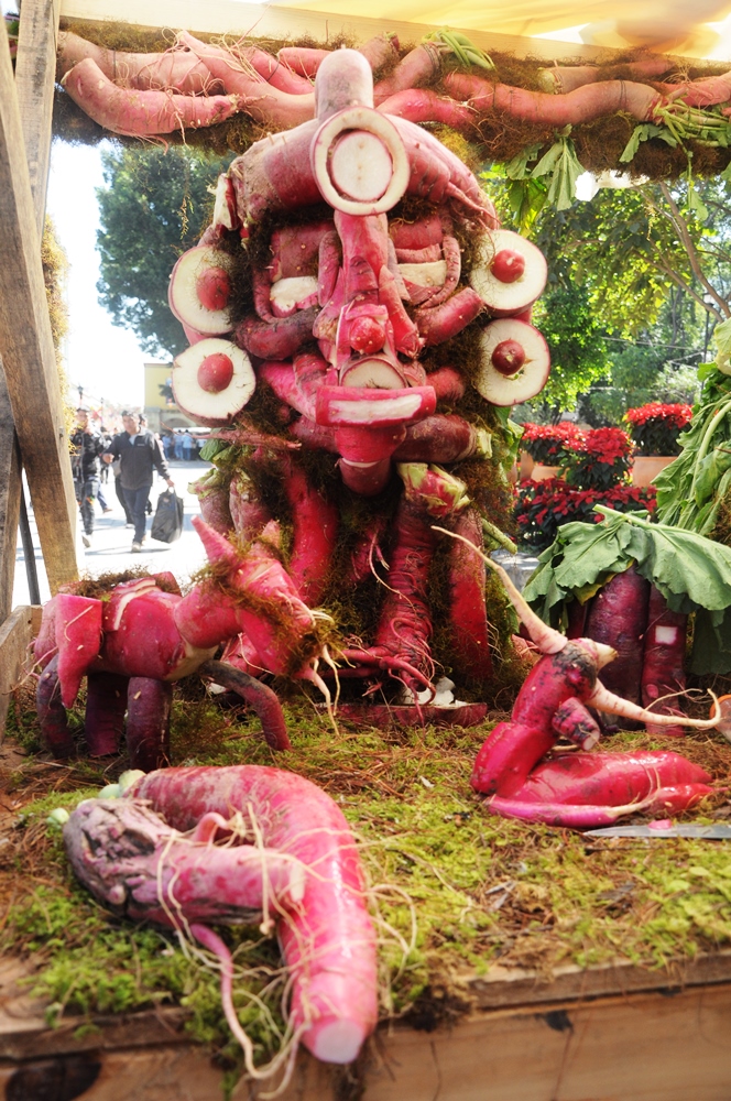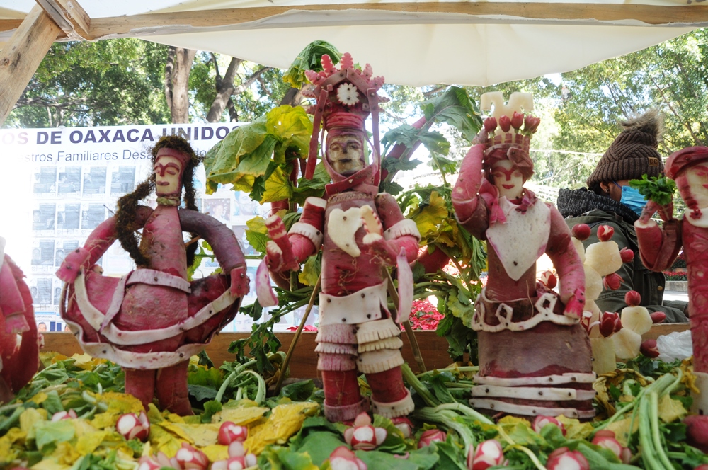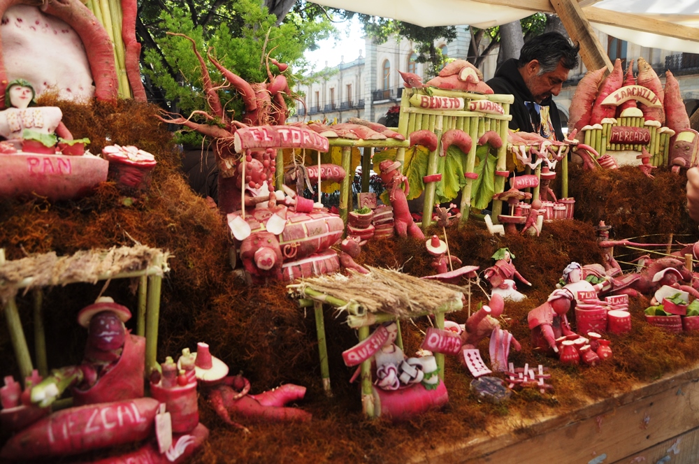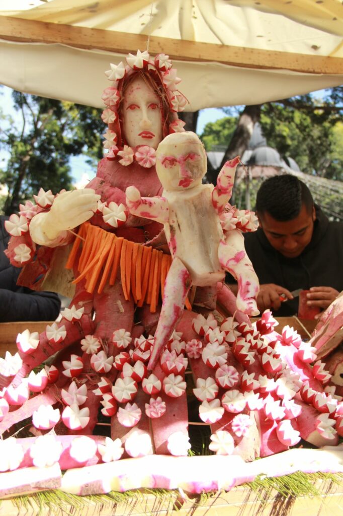 Oaxaca de Juárez Oax.México.- Vuelve a cautivar las manos de los artistas que participan en la tradicional noche de rábanos única en este hermoso estado del sureste mexicano, con hermosas y bellas obras de arte elaboradas con el tubérculo, donde luego de la cosecha tienen máximo cuatro días para elaborar las obras con las que concursan y en donde se ve el trabajo de muchas horas pues en varias de estas tienen un gran trabajo para su elaboración.