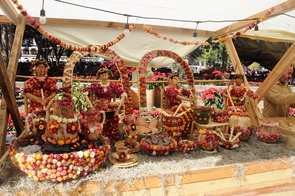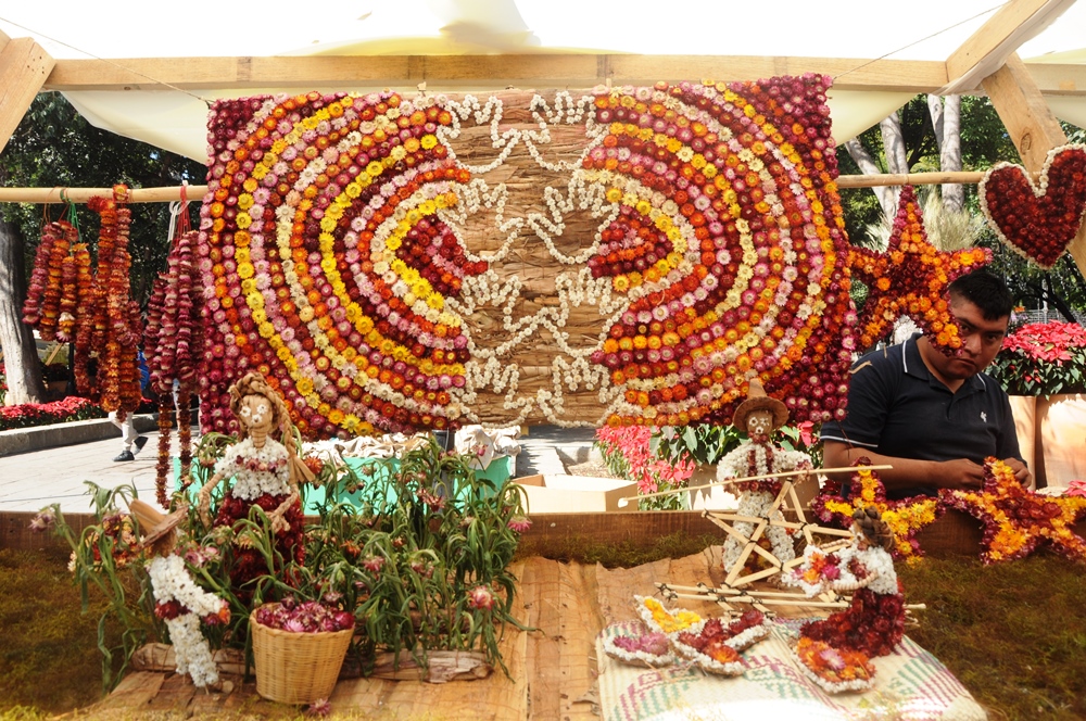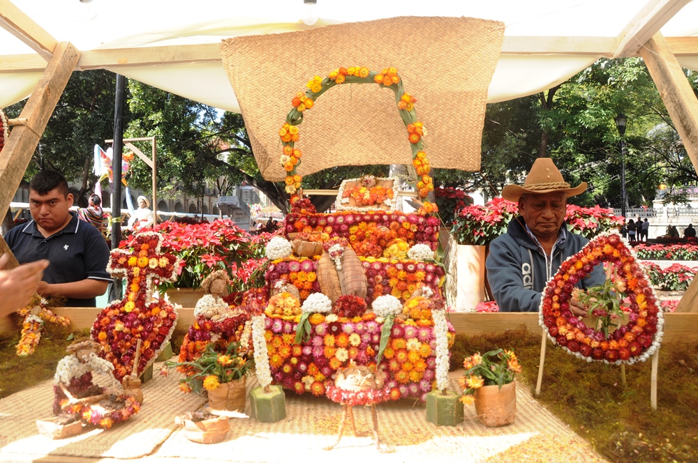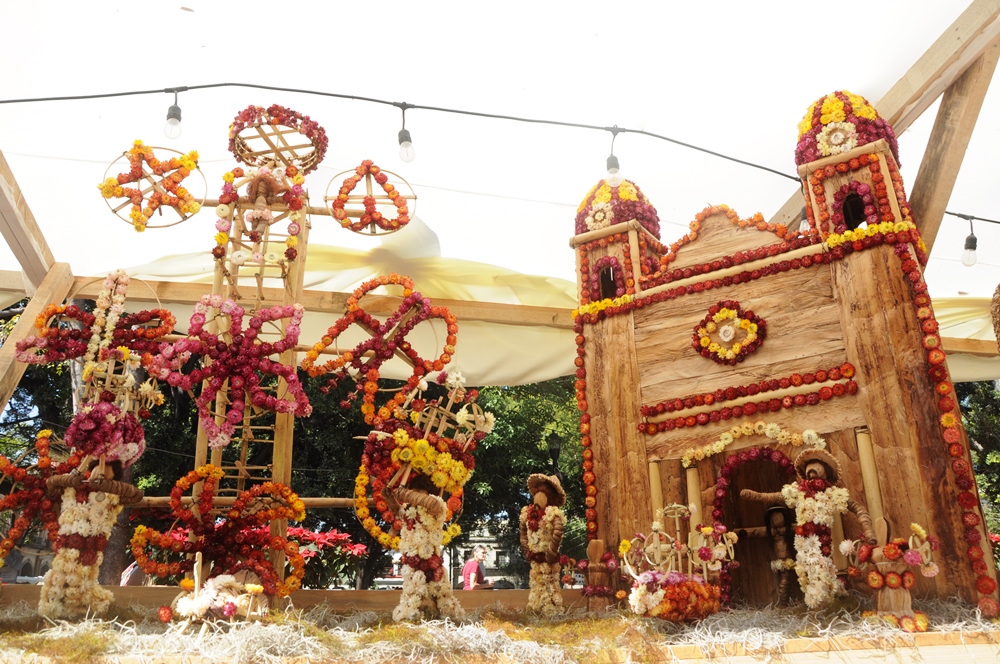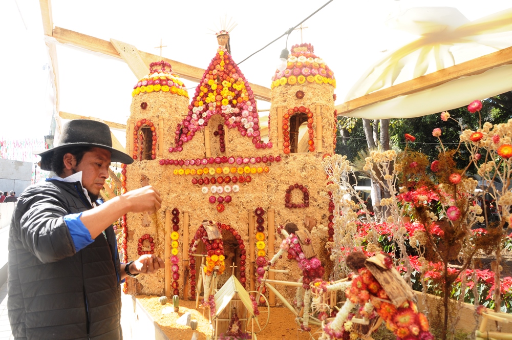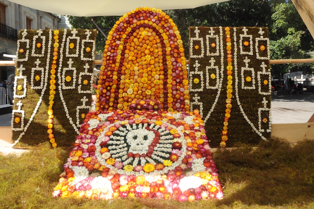 Mención especial merecen los participantes de San Antonino Castillo Velasco Ocotlán de Morelos de los valles centrales de Oaxaca, que participan con obras de flor inmortal que ellos mismos cultivan en sus campos y que con ellas elaboran hermosas obras que les llevan meses de trabajo y que hoy podemos admirar también en el zócalo de la ciudad de Oaxaca de Juárez.
