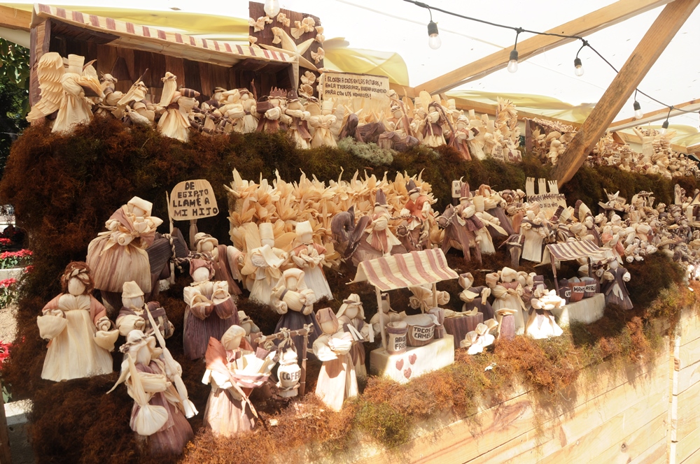 De la hoja del maíz se elaboran estas hermosas obras que también por la dificultad o tema lleva varios meses y horas de trabajo, así como la espera para que la siembra del maíz de la tonalidad natural o bien de un tono morado como se muestra en estas bellas obras que las manos de los artistas muestran al mundo.