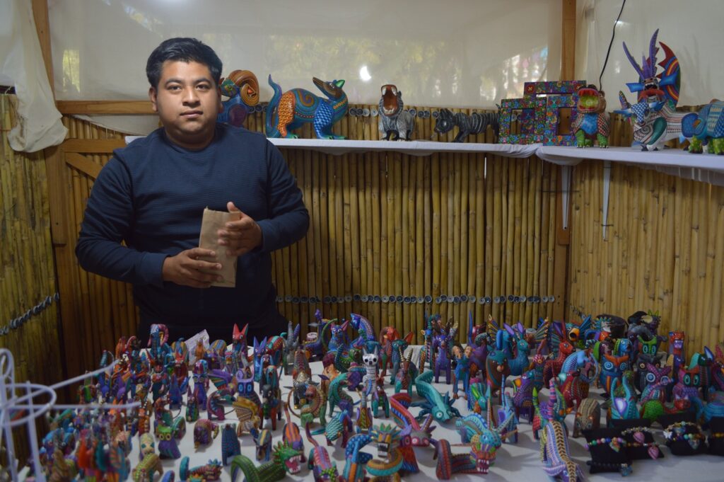 En el centro de la población de San Martín Tilcajete, los artesanos expenden sus obras al público a propios y extraños que, tallados en madera de copal y decorados dan vida a cada una de sus expresiones artísticas las que se expenden hasta el día 5 de enero de 2025, en un horario de 10 de la mañana hasta las 6 de la tarde, también puedes comprar el alebrije y decorarlo con tus propias manos.