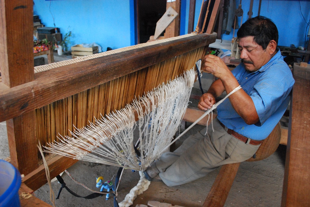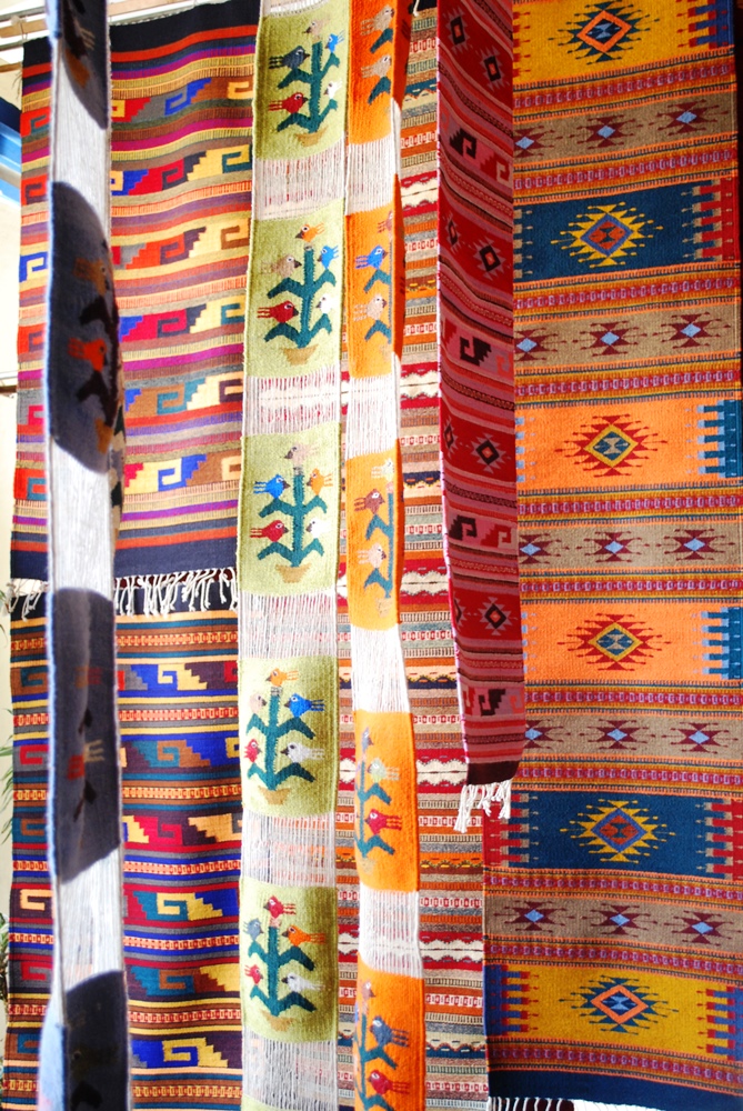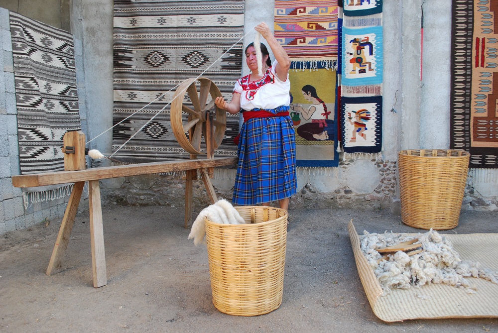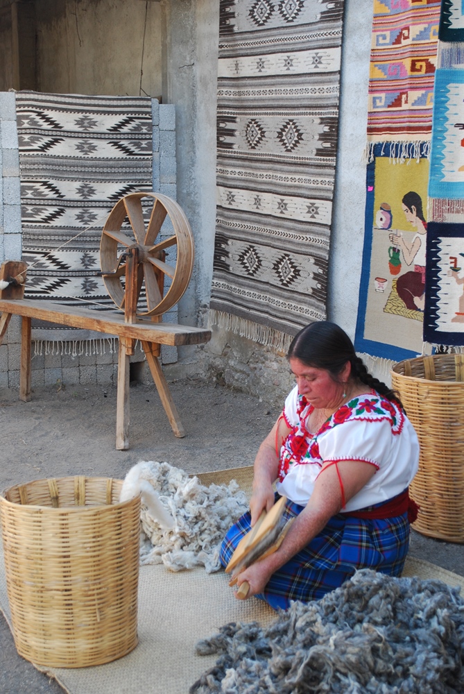 Santa Ana del Valle Tlacolula de Matamoros Oaxaca México.- Las manos mágicas de mujeres y hombres que elaboran hermosos tapetes de lana, que luego de un proceso de teñido del hilo con flores, plantas, y frutos que ellos conocen sus proceso por generaciones, logran hermosas tonalidades que luego llevan a los telares de pedal para realizar bellos tapetes que usted puede adquirir en su mercado de la población, así mismo cuenta con un museo donde podrá admirar hermosas obras encontradas en sus tierras de este municipio de los valles centrales de Oaxaca.
