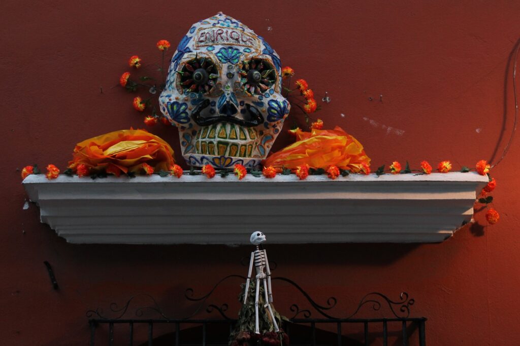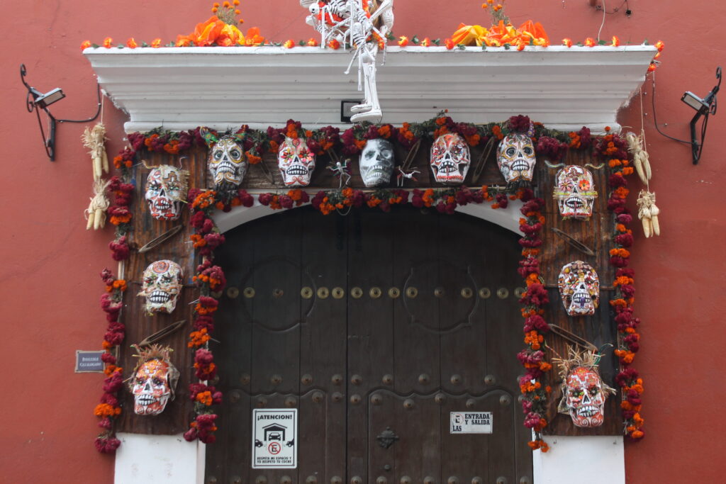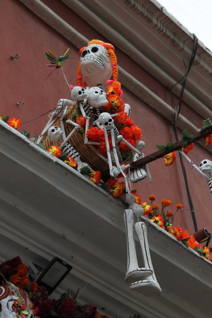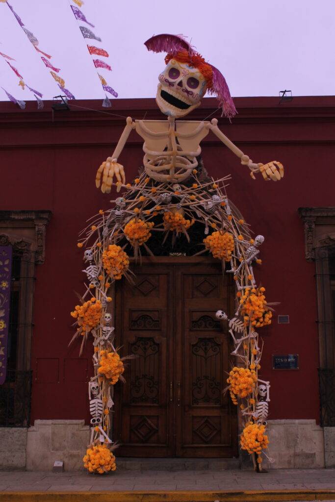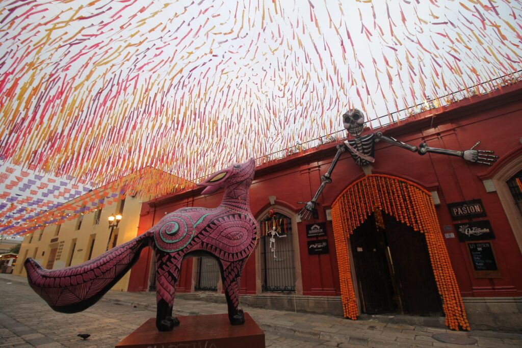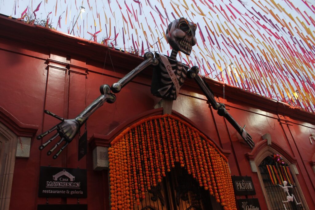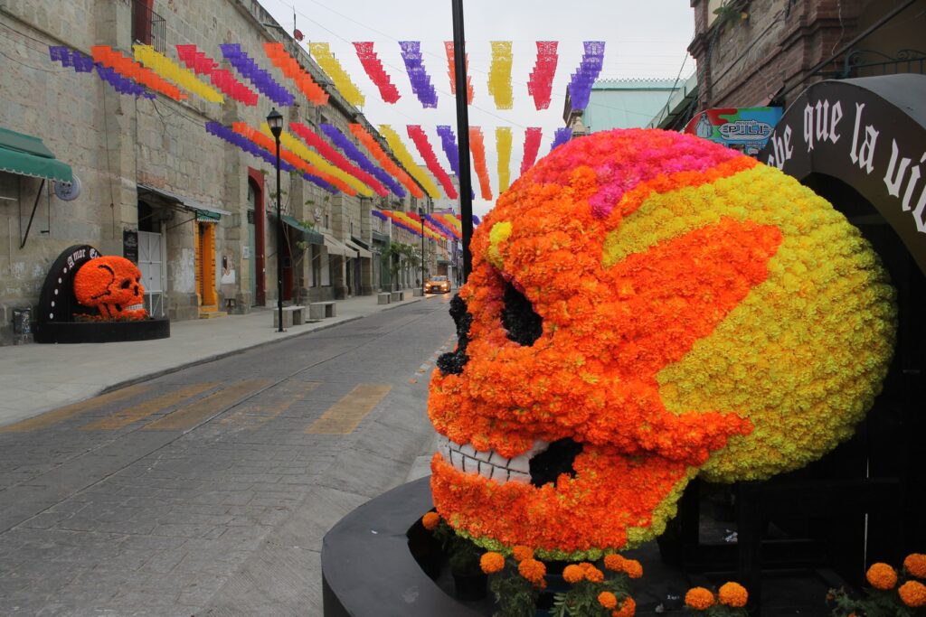 Facha con flor inmortal en el andador turístico de la ciudad de Oaxaca de Juárez.