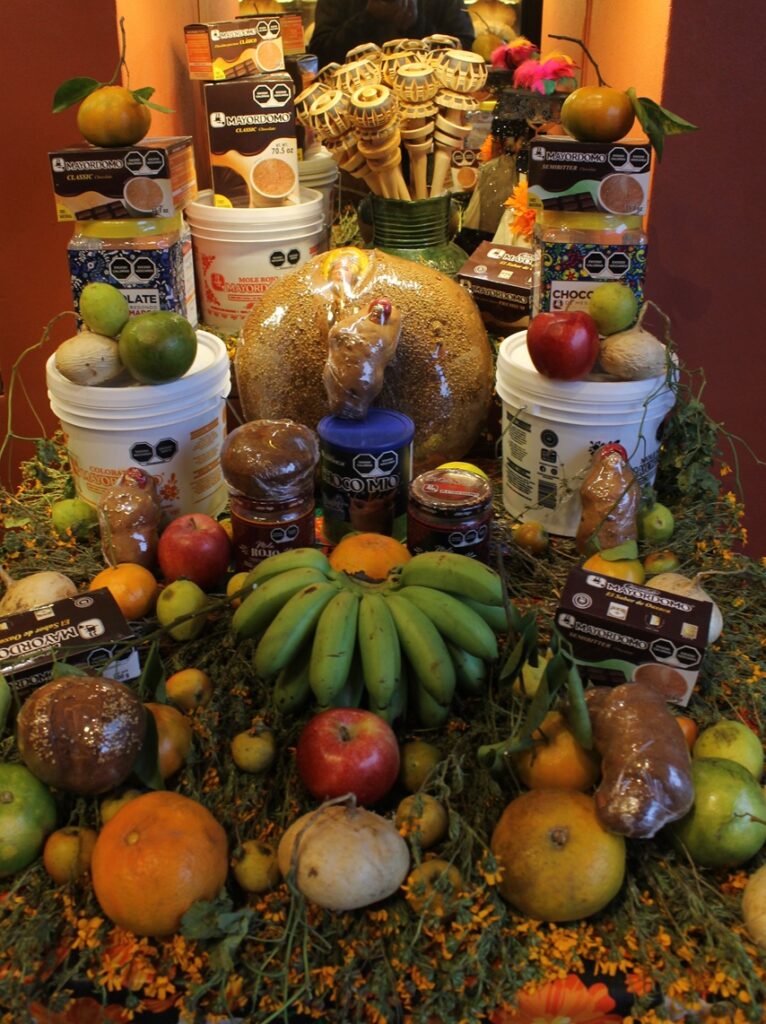Chocolate y panadería «Chocolate Mayordomo», también realiza con sus exquisitos productos su altar con chocolate, mole y pan, empresa cien ciento oaxaqueña, con una gran calidad en sus productos.