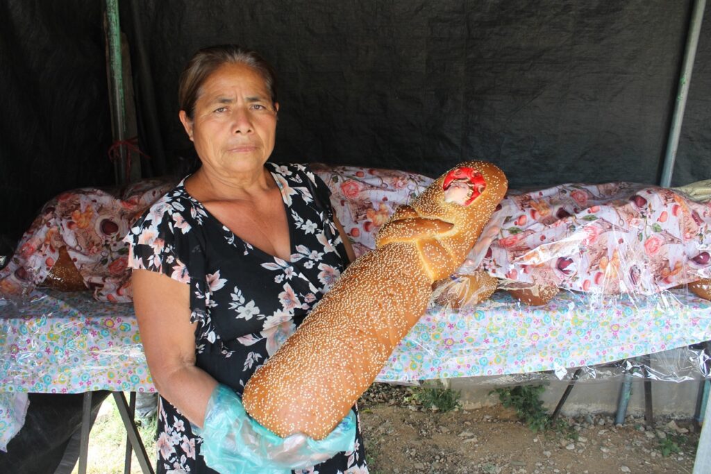 Este pan de yema tradicional elaborado por las manos de mujeres y hombres que durante estos días trabajan arduamente para que no falte en los tradicionales altares de los hogares oaxaqueños, Rocio Vásquez, quien vive en San José Atzompa calle Zaragoza #10, pero ahorita desde las 8am expende este rico pan en carretera a San Pedro Ixtlahuaca esquina a la población de los Audelo con precio de $180.00 este exquisito pan y claro hay más pequeños .