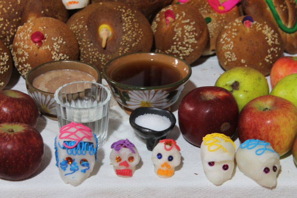 Chocolate y Café de «Mayordomo» empresa oaxaqueña, en tazas de la alfarería «Chávez» 9511464644 y 9514648283, Sal en barro negro de San Bartolo Coyotepec, Calaveras de Azúcar por manos de oaxaqueñas de Zaachila.