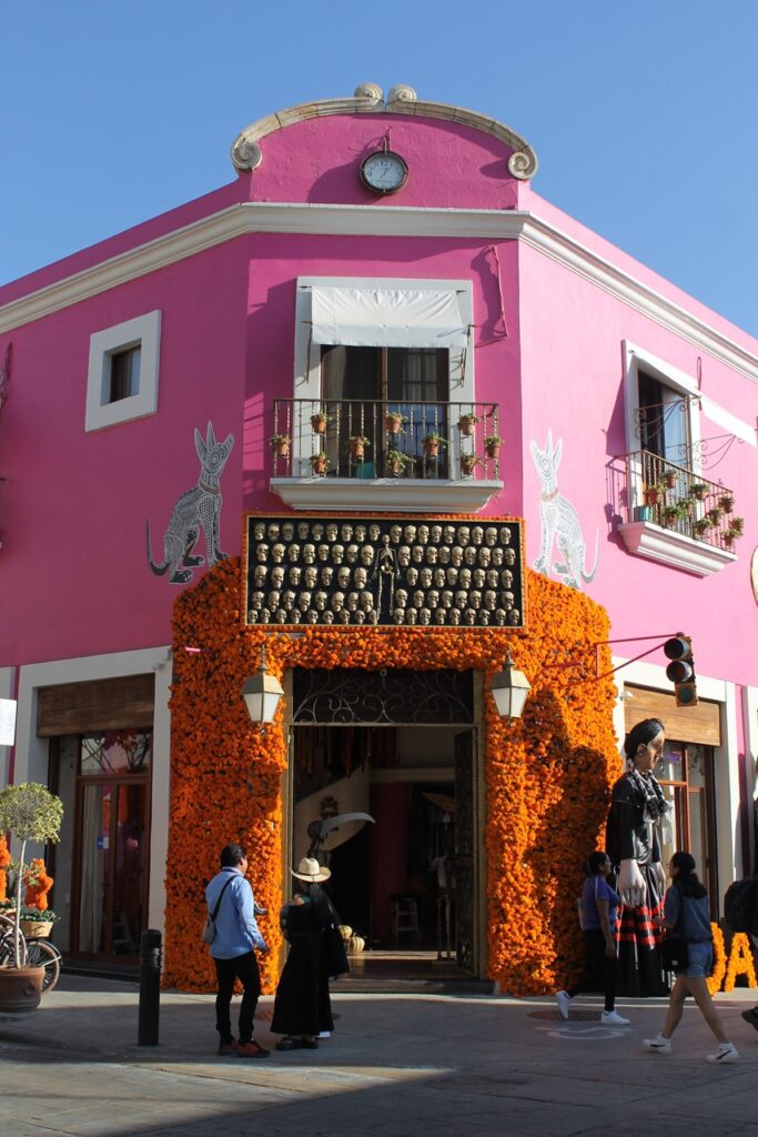 Hotel en la esquina de la calle de las Casas y Flores Magón en el centro de la ciudad de Oaxaca de Juárez, quienes adornan sus fachadas en esta festividad que admiran quienes visitan esta bella ciudad del sureste mexicano.
