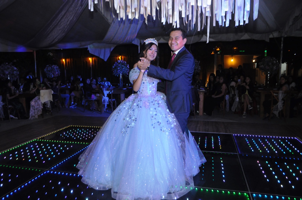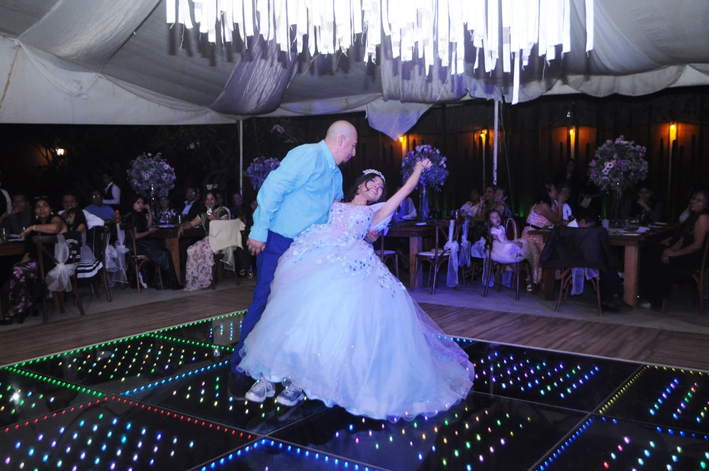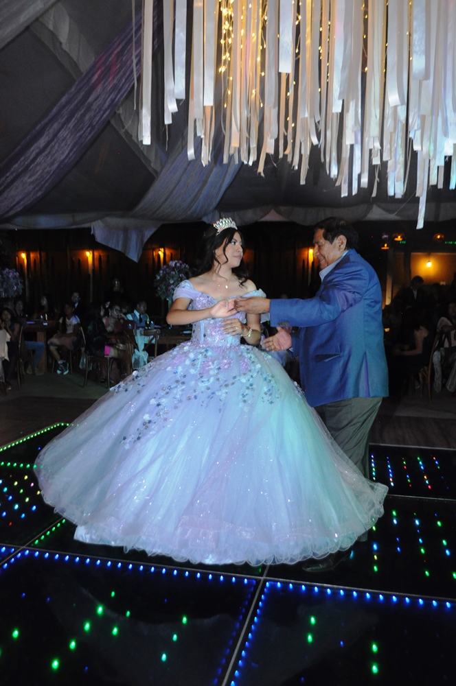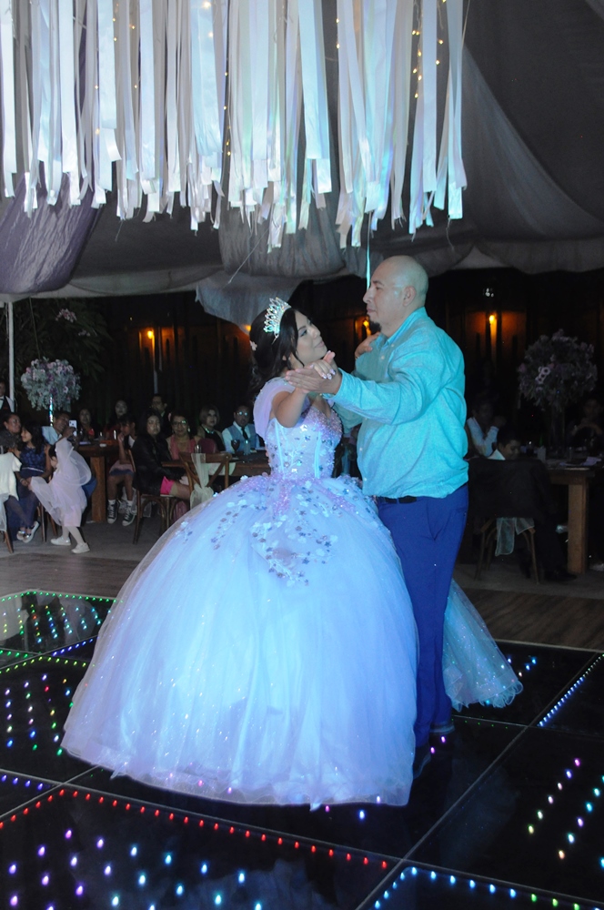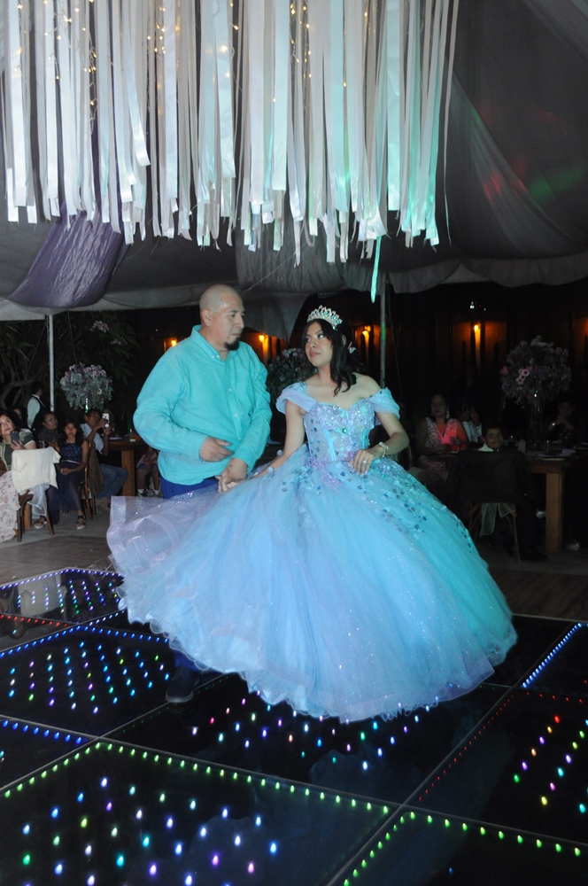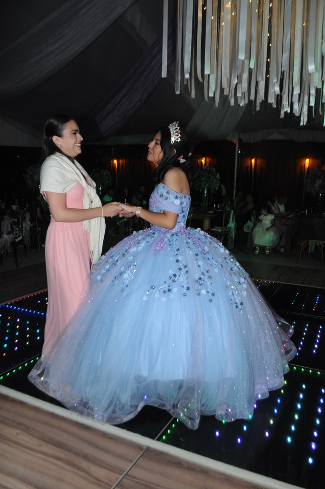 Acompañada de su padre nuestra festejada bailo el tradicional vals, posteriormente el vals familiar, así como le fue entregada su ultima muñeca, su ramo de flores, recibió de sus familiares y amigos hermosos presentes por la ocasión.