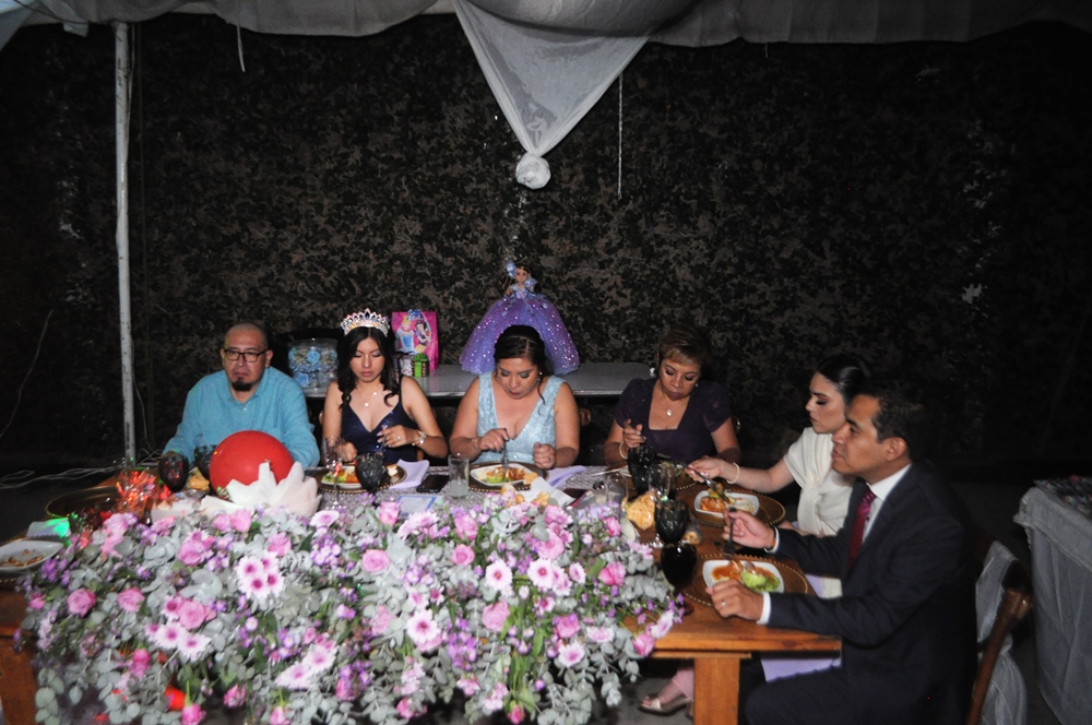 Se sirvió una exquisita cena que degustaron los invitados, para pasar al tradicional pastel, continuando con el baile hasta altas horas de la noche donde siempre acompañada de familiares y amigos disfrutaron el acontecimiento en un ambiente de armonía pues el lugar fue decorado con hermosas flores naturales que dieron la paz y tranquilidad a los invitados.