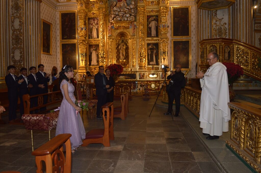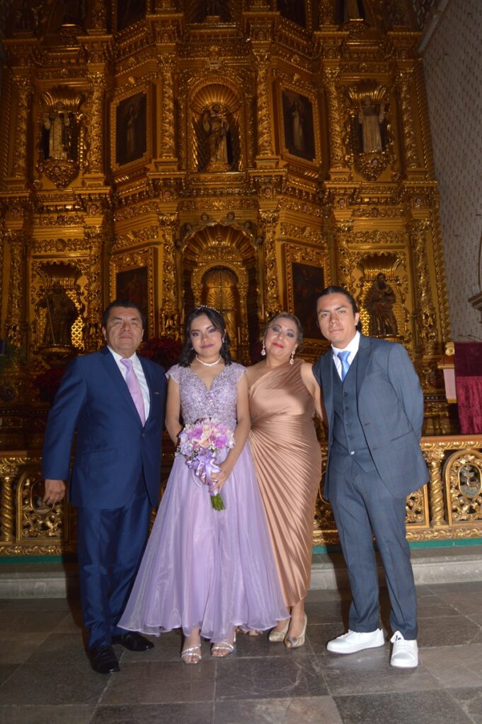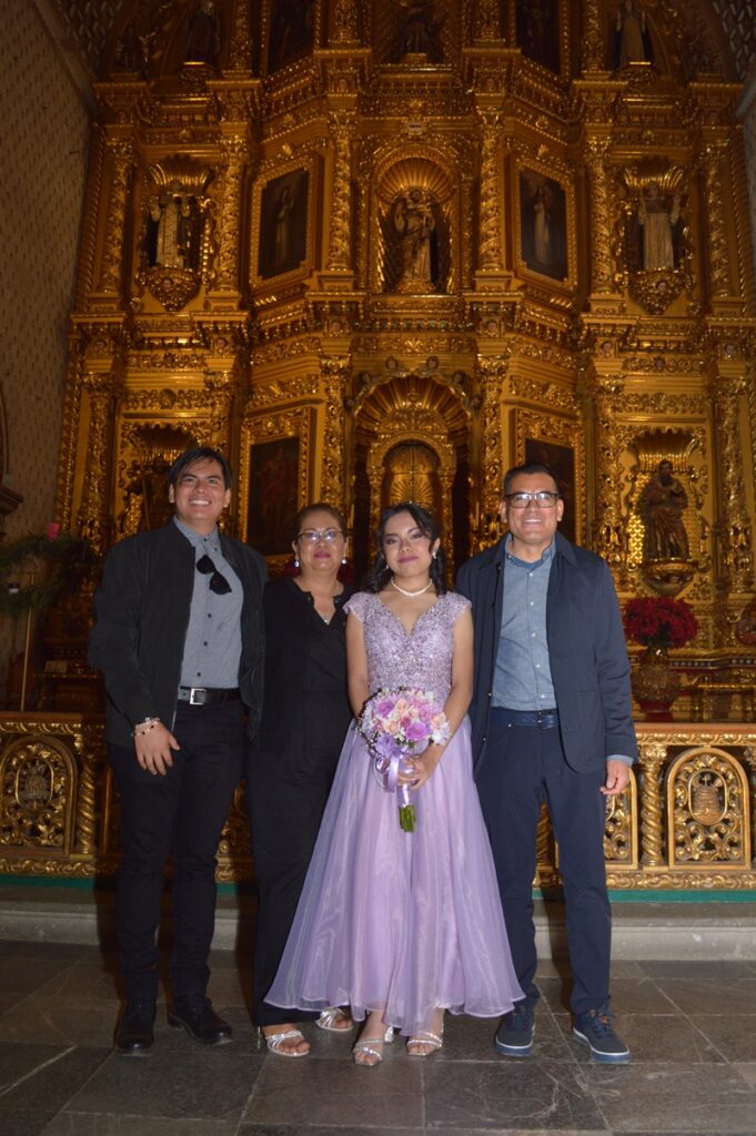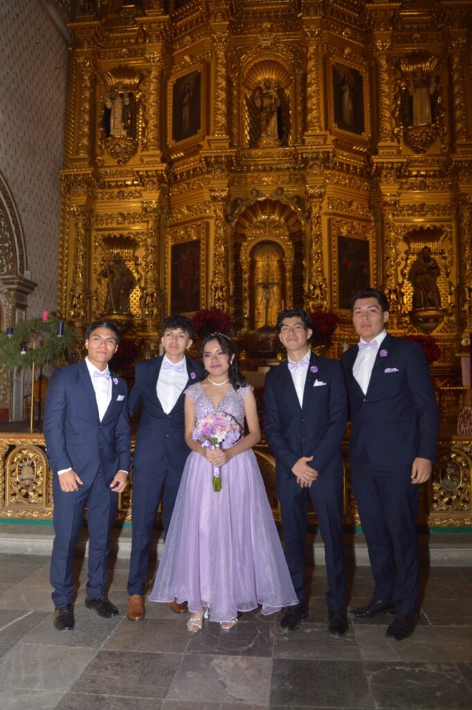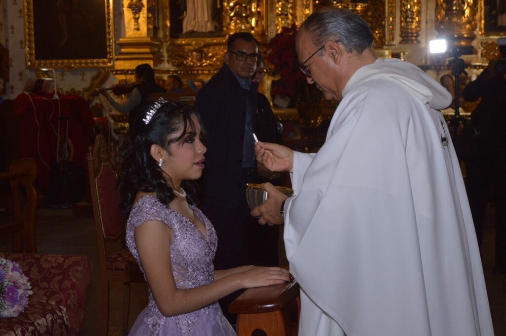 En el majestuoso templo dominico de Santo Domingo de Guzmán, se ofició la misa de acción de gracias por los XV años de Julieta del Carmen Agüero Méndez, quien acompañada de sus padres; Jesús Ignacio Agüero Morales y Patricia Julieta Méndez Ortiz, así como de sus padrinos, Hugo Ortiz Barranco y Melania Martínez León, acompañaron a la feliz quinceañera que fue felicitada al término de la ceremonia religiosa por sus abuelos maternos y paternos, tíos primos y amigos invitados a dicho acontecimiento.