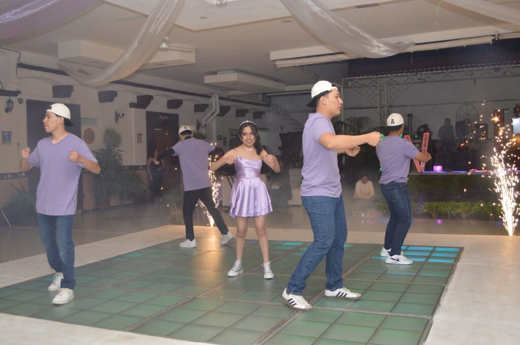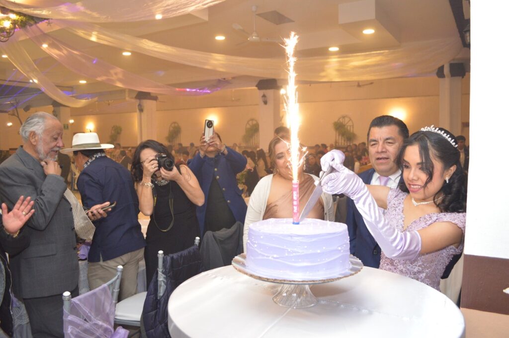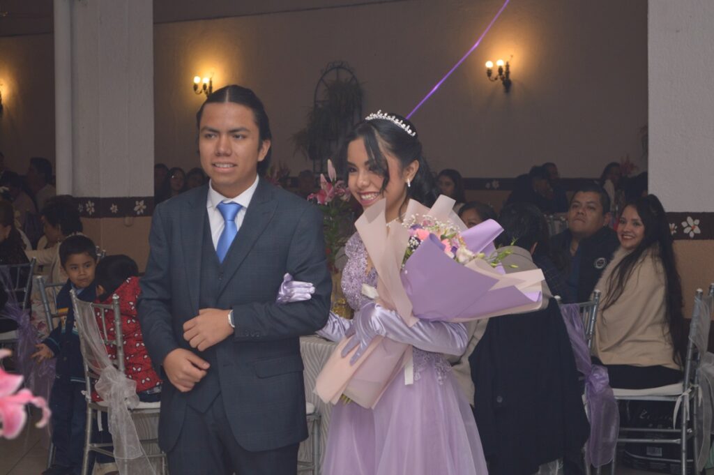 Posteriormente en la quinta San Rafael, se llevó a cabo la recepción donde los invitados obsequiaron hermosos regalos a la festejada, bailo su vals acompañado de sus chambelanes, le fue entregada su última muñeca, y su ramo de flores por su hermano, Ignacio Nicolas Agüero Méndez, posteriormente el tradicional vals familiar para dar paso al brindis y no podía faltar el tradicional pastel para después servir la exquisita cena, y bailar hasta las primeras horas de este día.