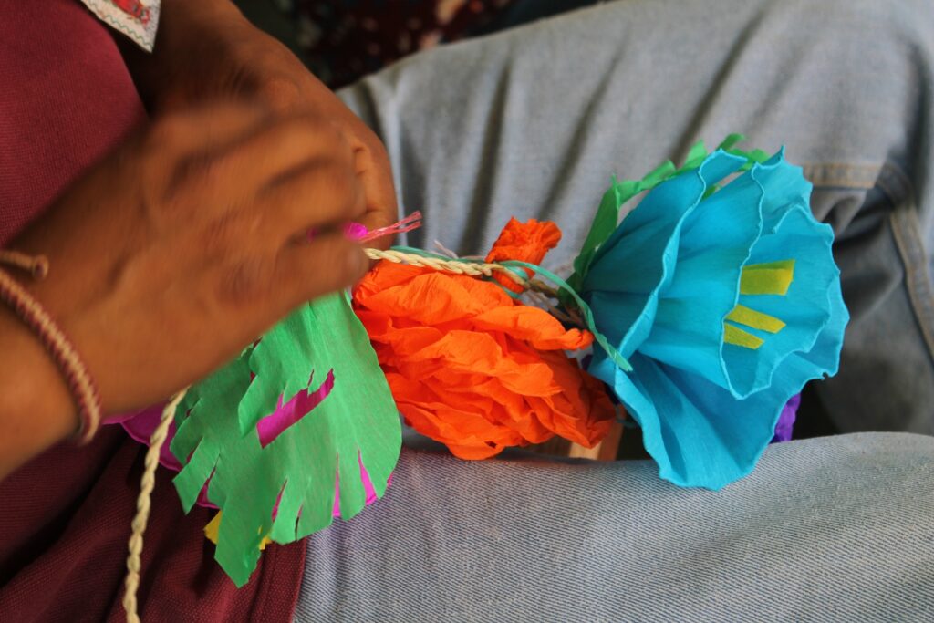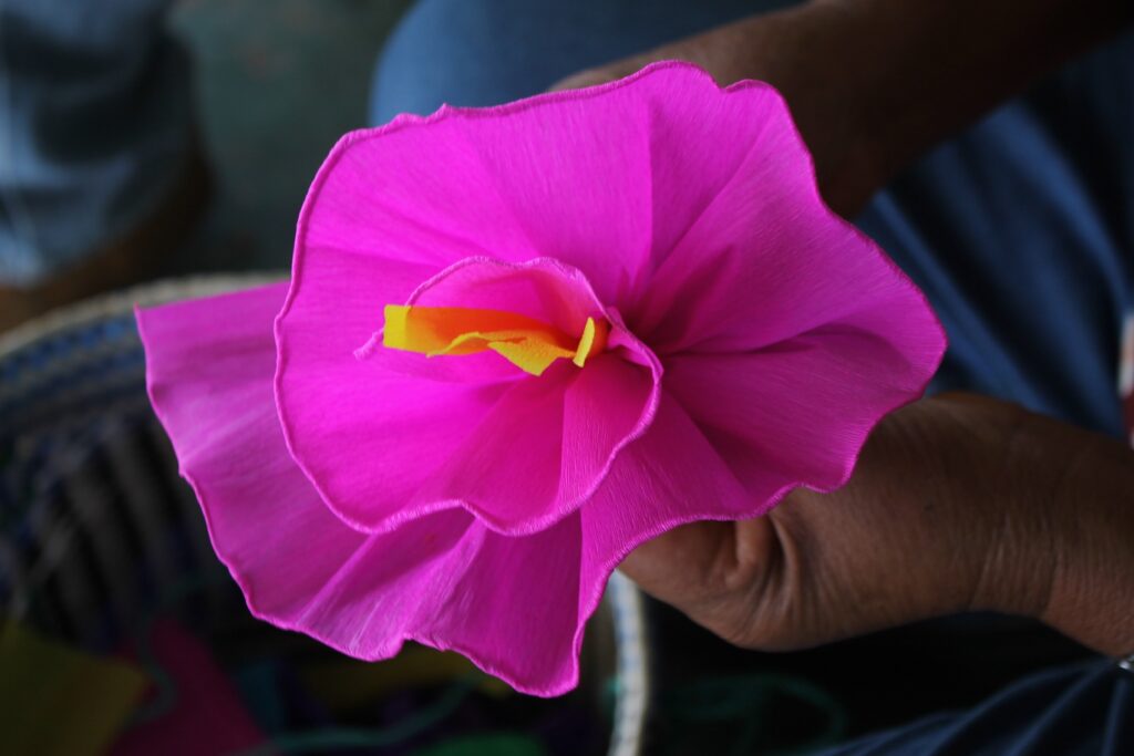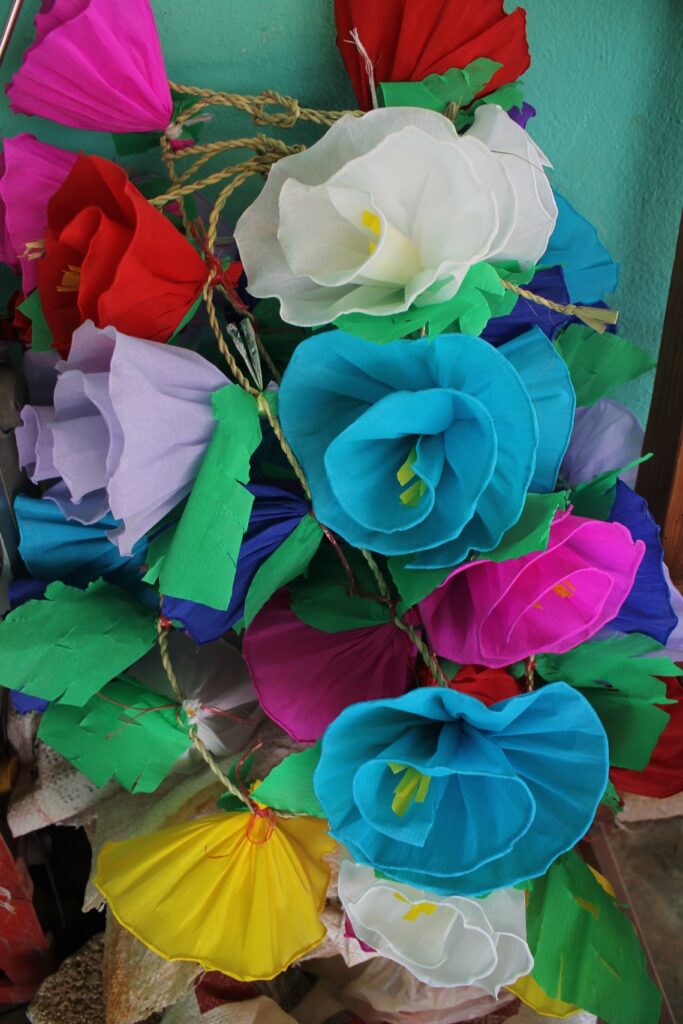 En esta población de la región mixteca de Oaxaca, las mujeres con anticipación elaboran flores de papel de colores, el hombre con la palma realiza el trenzado de un mecate para la colocación de las flores las cuales al termino son para adornar a los animales de trabajo en el campo y con ello rinden culto a San Isidro Labrador hoy 15 de mayo de 2025, deseando que el temporal de lluvia caiga sobre sus tierras áridas pues la importancia para la siembra de frijol, maíz, calabaza, chilacayote entre otros.
