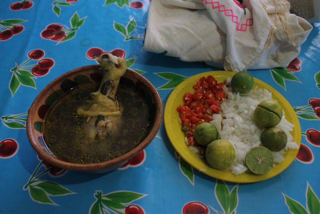 Finalmente al termino se echa los cohetes anunciando el termino en cada hogar son las 12 del día y se pasa a saborear un exquisito pozole con un mole amarillo y su respectiva carne, otros realizan caldo de pollo criollo acompañado de unas exquisitas tortillas de maíz amarillo, un rico mezcal pues es día de fiesta en esta hermosa población de San Pedro Yucuxina Tamazola Nochixtlán Oaxaca México.